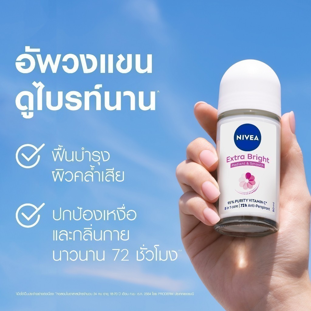 [สินค้าขายดี] นีเวีย เอ็กซ์ตร้า ไบรท์ เรเดียนท์ แอนด์ สมูท โรลออน โรลออนระงับกลิ่น โรลออนผู้หญิง 50 มล. 2ชิ้น NIVEA