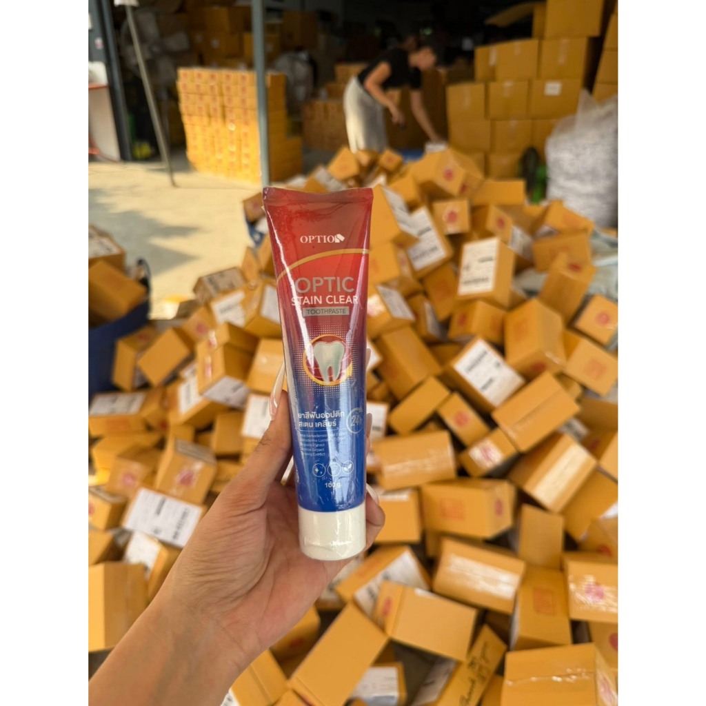 Option Optic Stain Clear ยาสีฟันออปติก สเตน เคลียร์ ช่วยดูแลผิวฟันอย่างอ่อนโยนและลดอาการเสียวฟัน 100g.