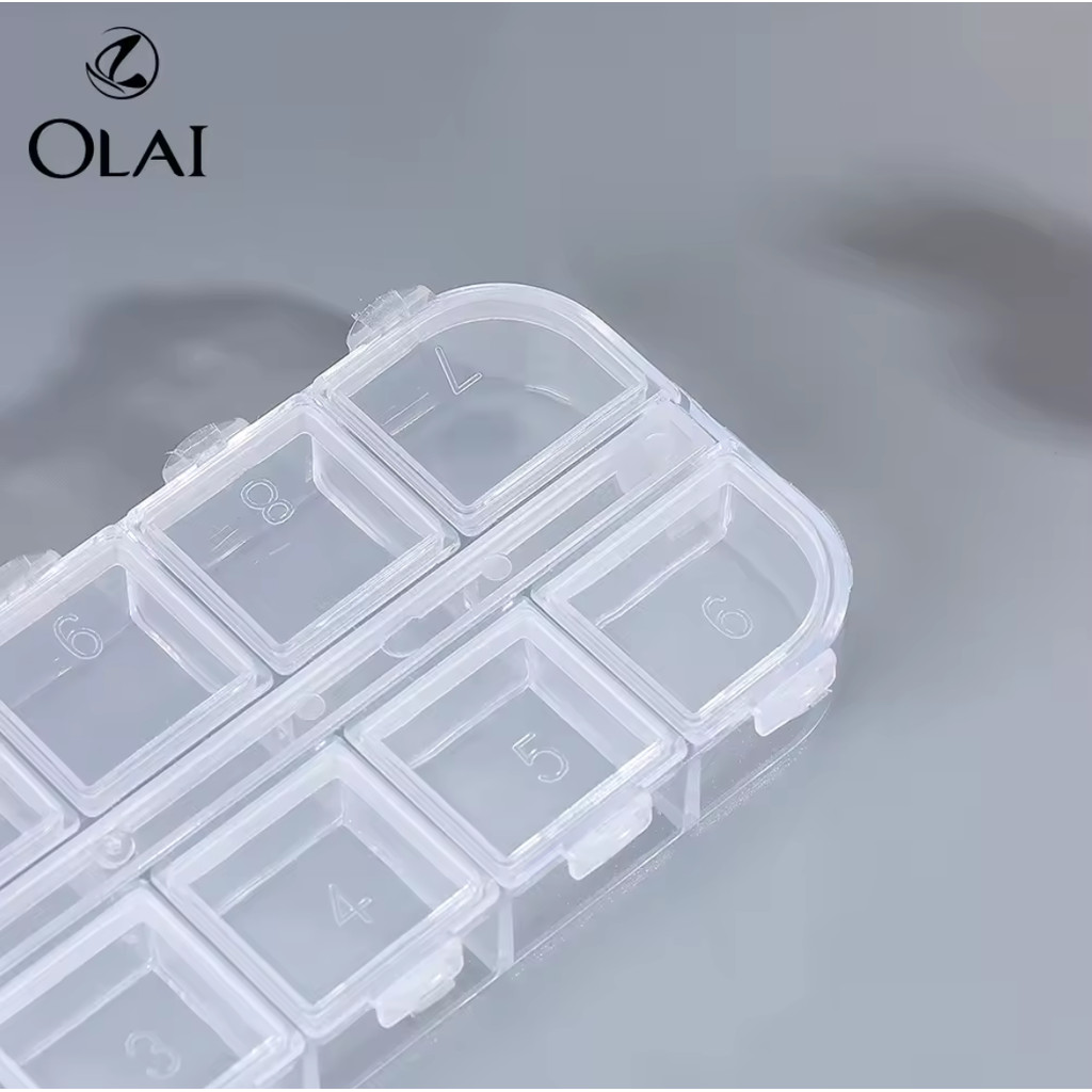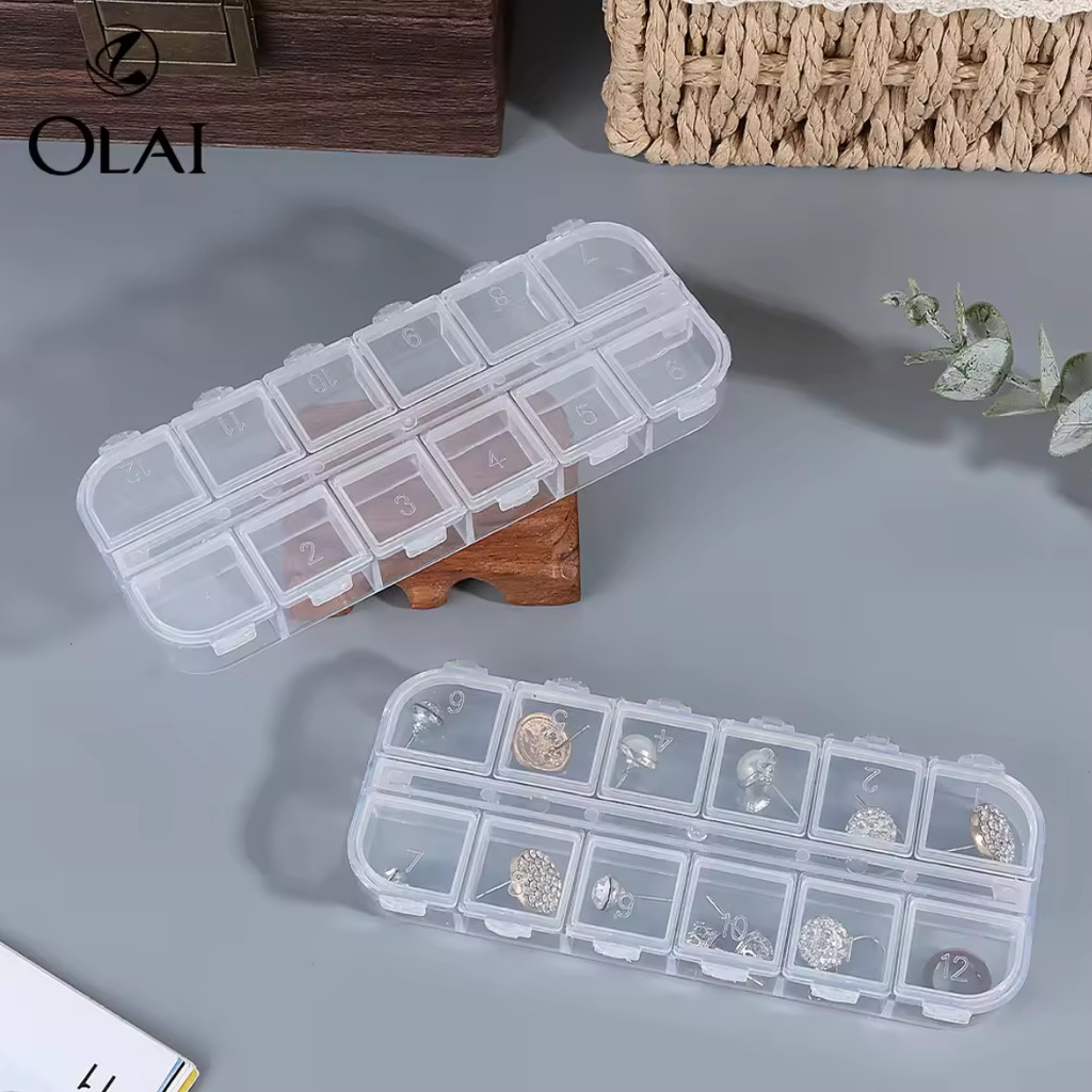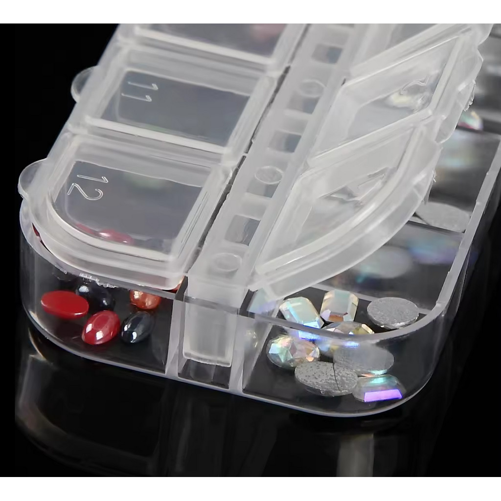 ( กล่องเหลี่ยมใส 12ช่อง ) กล่องใส่ของแต่งเล็บ จิวเวอรี่ แต่งเล็บ มุก หมุด เพชรแต่งเล็บ อุปกรณ์ทำเล็บ