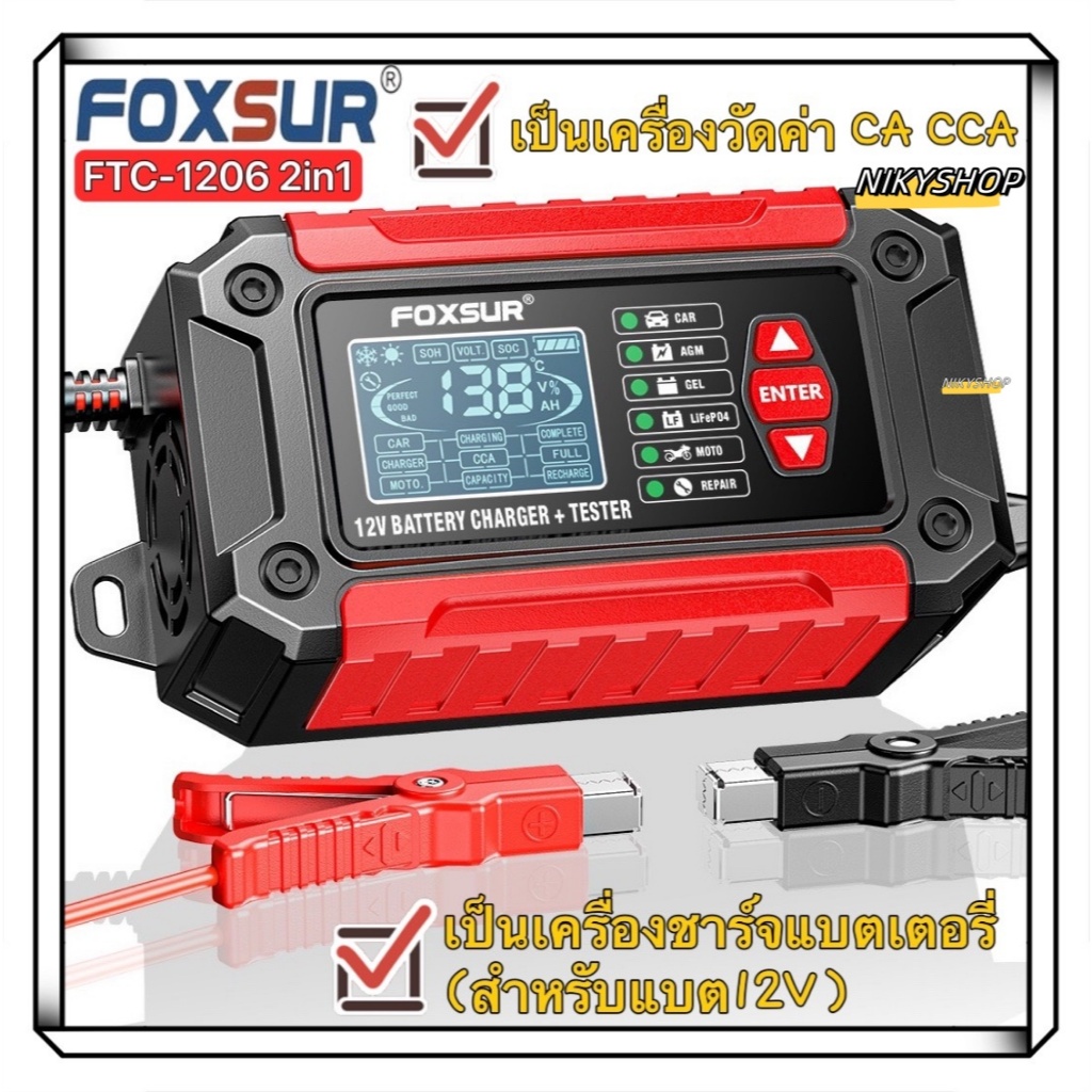 Foxsur FTC-1206 เครื่องทดสอบแบตเตอรี่2 in 1 + เครื่องวิเคราะห์แบตเตอรี่ตะกั่วกรดสำหรับรถจักรยานยนต์รถยนต์12V LiFePo4ชาร์