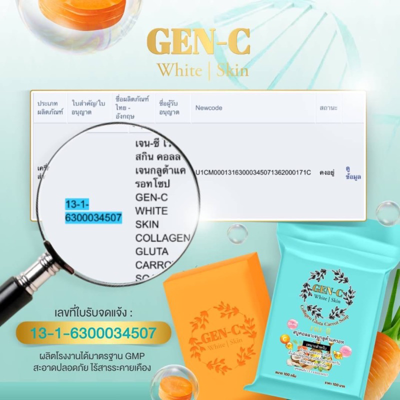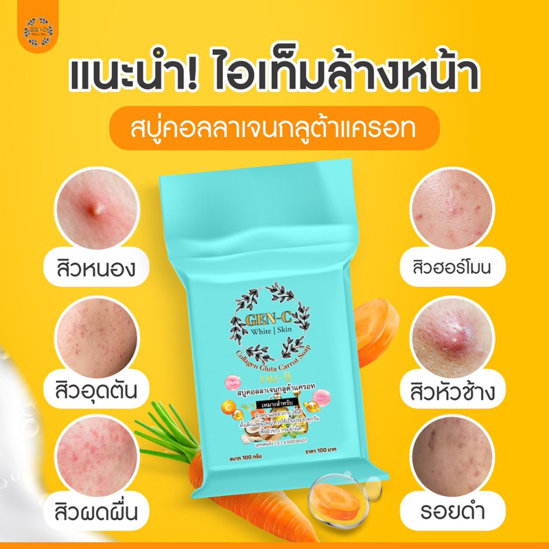 สบู่เจนซี GEN-C สารสกัดจากกลูต้าคอลลาเจน หัวเชื้อแครอทฟิลิปปินส์ ลดสิว ลดฝ้า ผิวกระจ่างใส{ของแท้มีบัตร}