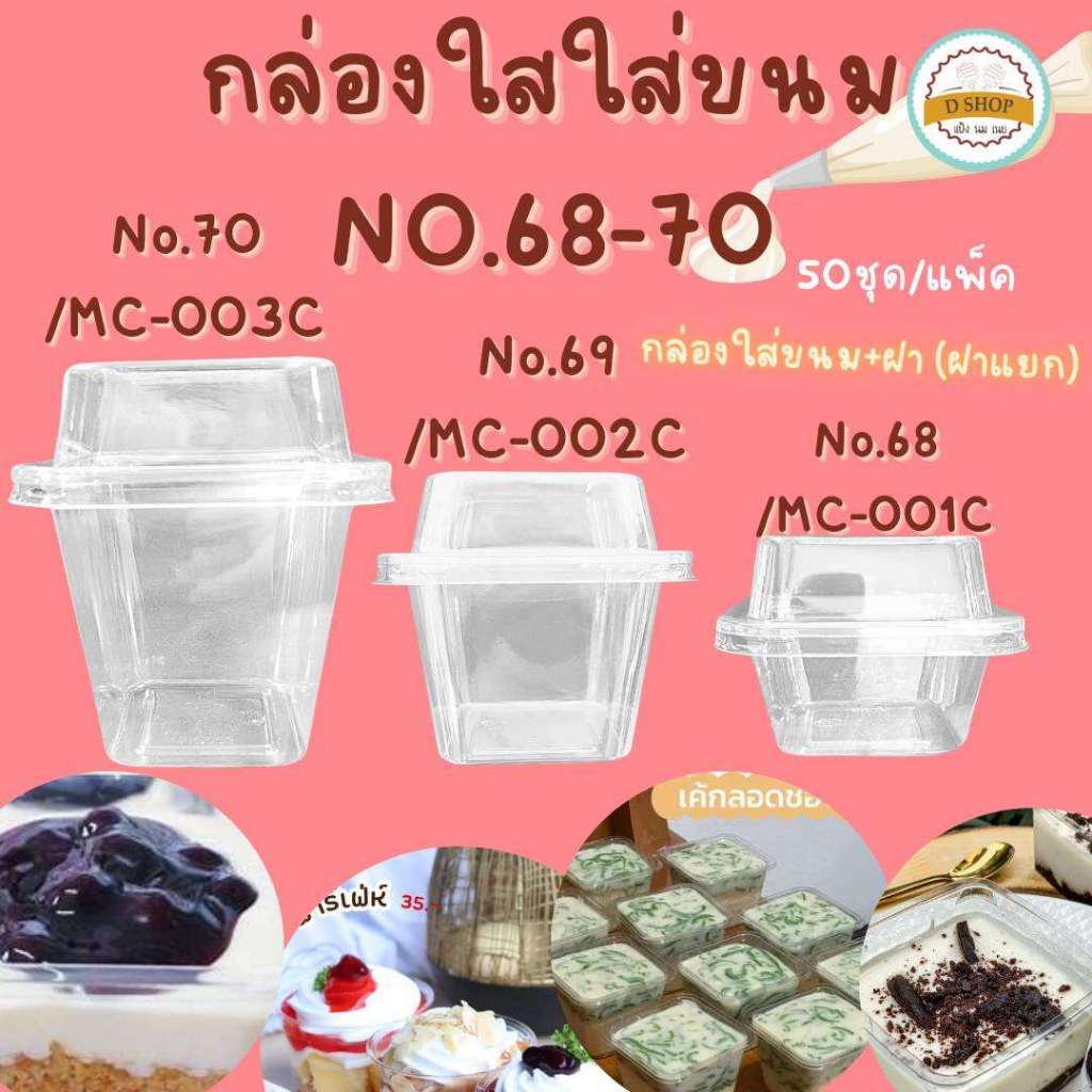 ถ้วยมูสพลาสติก แพ็ค 50 ใบ ฝาเรียบ ฝาโดม บานอฟฟี่ ชีสพาย ใส่ขนมสวย พลาสติก PET MC001 MC002 MC003 M020 M021 no.5 no.6