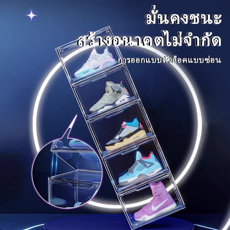 วัสดุแบบอะคริลิคใส tower shoe box ออกแบบฝาหน้าแม่เหล็ก เก็บวางรองเท้า กล่องวางรองเท้าโปร่งใส ตู้วางรองเท้ากล่องรองเท้า