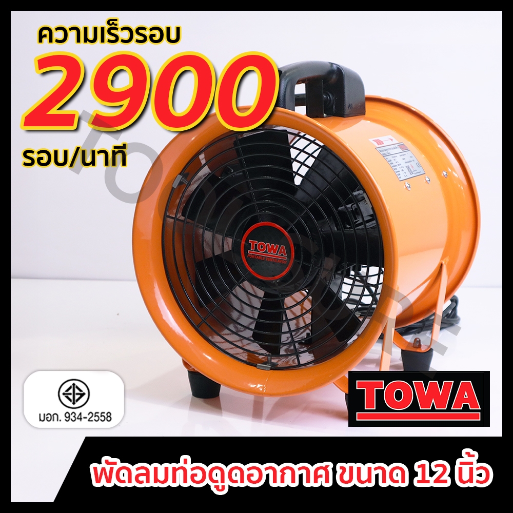 พัดลมอุโมงค์ พัดลมท่อดูดอากาศ พัดลมอุตสาหกรรม Towa 12 นิ้ว พร้อมท่อระบายอากาศ 5 เมตร