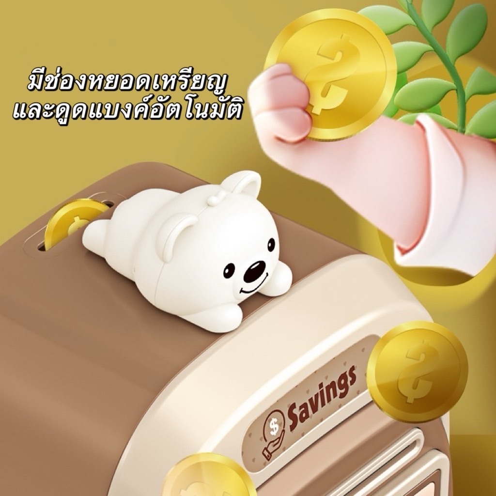 ATM กระปุกออมสินเลือกสีได้ มีเพลง หยอดเหรียญได้ เครื่องดูดแบงค์อัตโนมัติ ของเล่นเด็ก