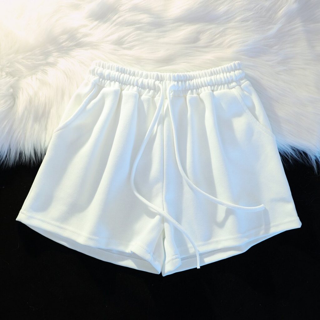 cherryshop พร้อมส่ง กางเกงขาสั้นกีฬาขากว้างสไตล์เกาหลีสำหรับผู้หญิง ทรงหลวม เอวยางยืดมีเชือกผูก เนื้อผ้าบางใส่สบาย