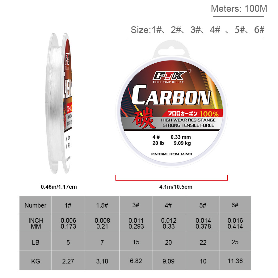 Ftk 100M Leader Line 100% สายตกปลาฟลูออโรคาร์บอนเครื่องมือตกปลาทะเล 5lb-25lb
