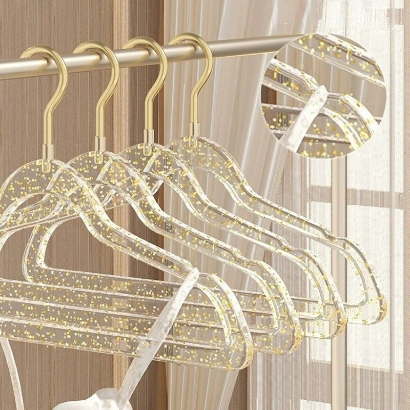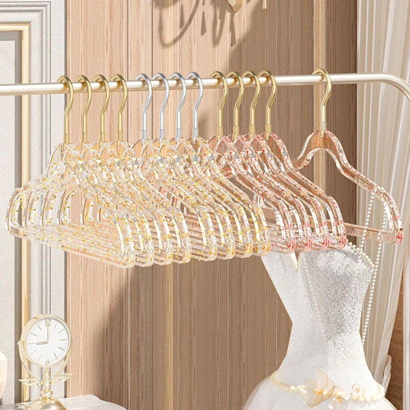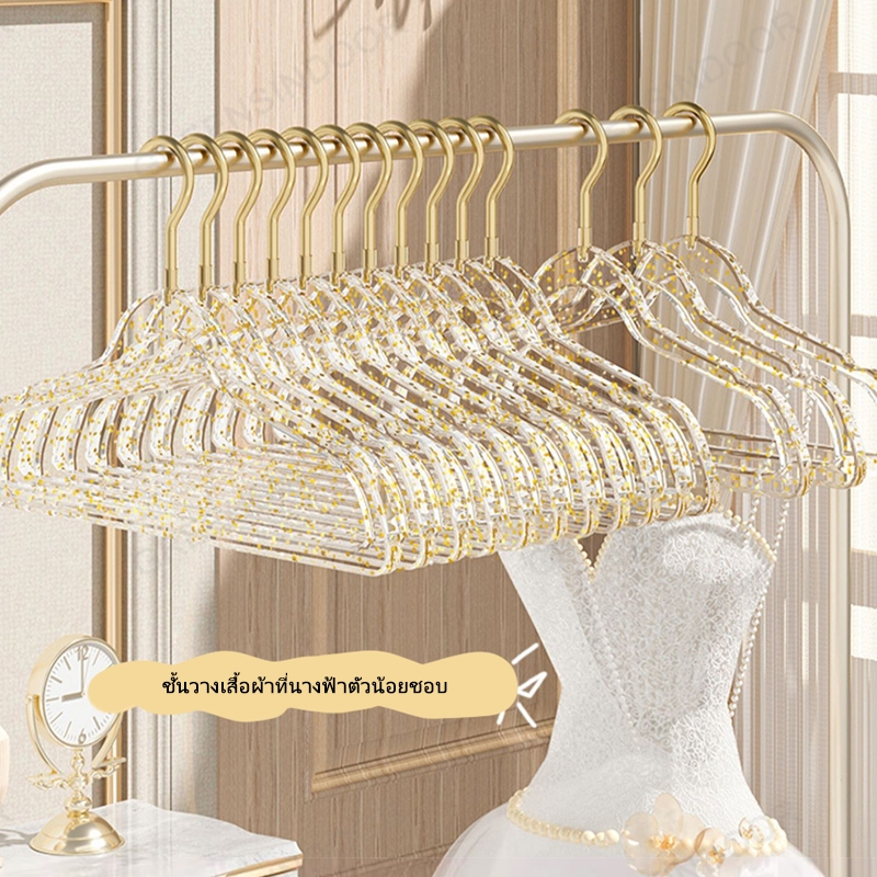 30PCS ไม้แขวนเสื้อพลาสติกแบบใส ไม้แขวนเสื้อกันลื่นประดับลายกลิตเตอร์ สีสันน่ารัก