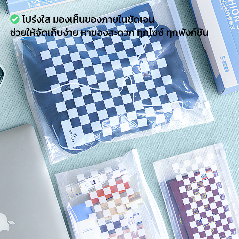 GRAREY ถุงซิปจัดเก็บเสื้อผ้า ของใช้ อาหาร ถุงคัดแยก เข้าตู้เย็นและไมโครเวฟได้ หนาพิเศษ มีซิปรูด