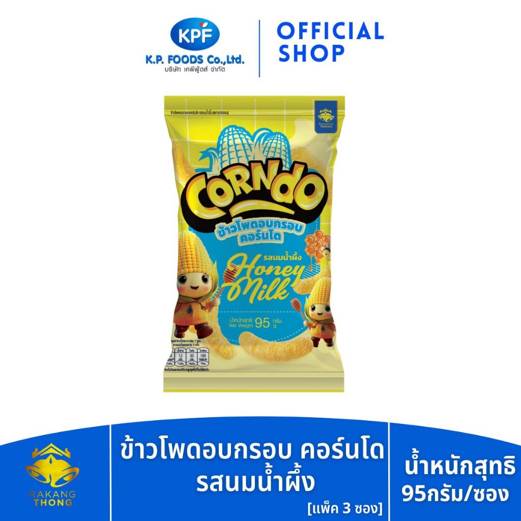 [แพ็ค 3ซอง] ข้าวโพดอบกรอบคอร์นโด รสนมน้ำผึ้ง (ตราระฆังทอง) 95ก. - KP FOODS