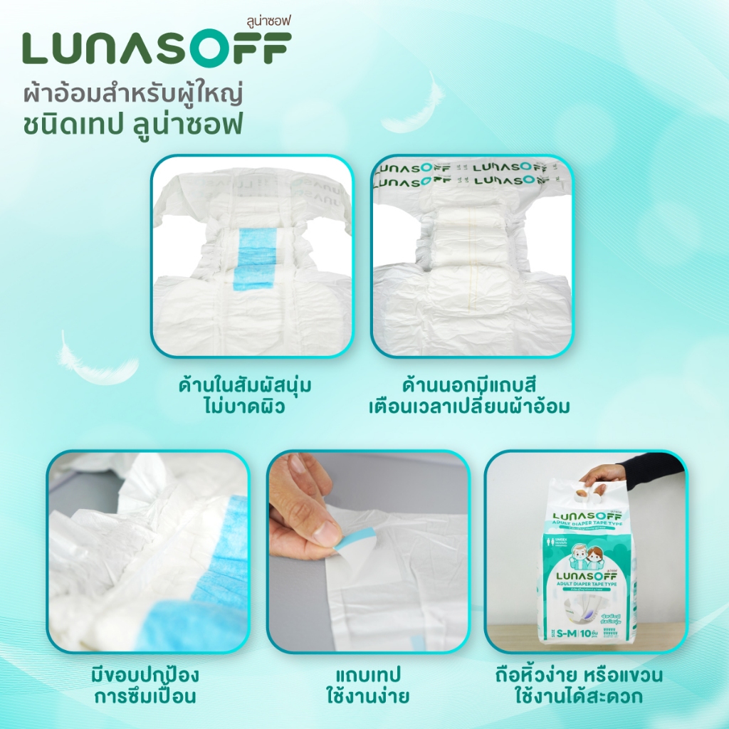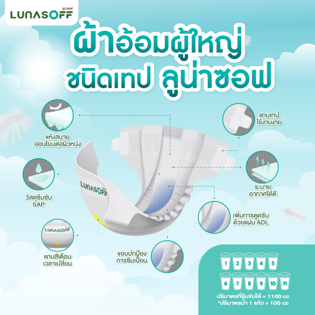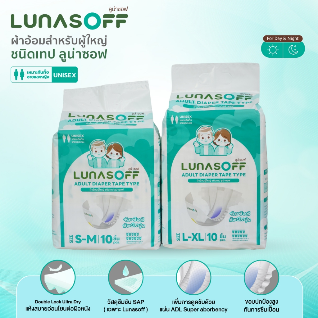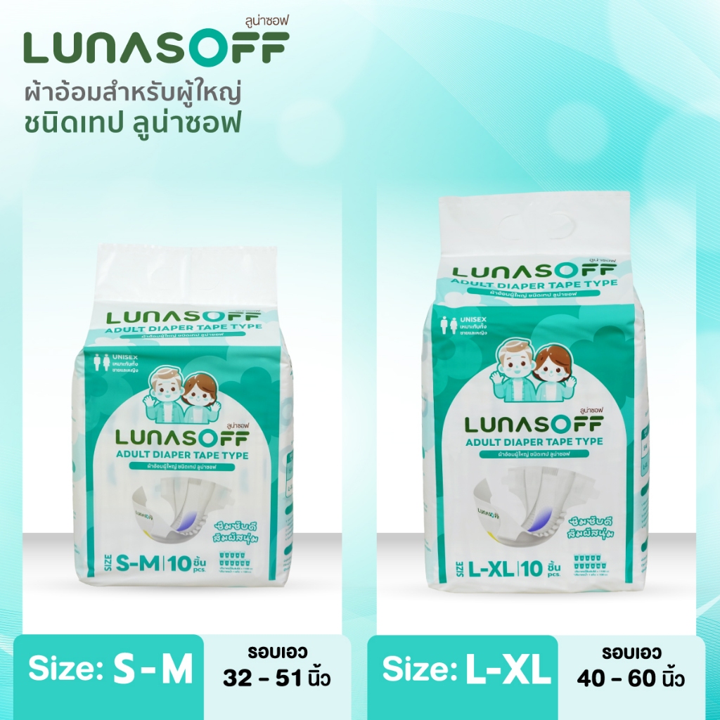 ลูน่าซอฟ ผ้าอ้อมผู้ใหญ่ ชนิดเทป ซึมซับดีด้วยการซึมซับ 7 ชั้น ( 12 แพ็ค/ลัง)