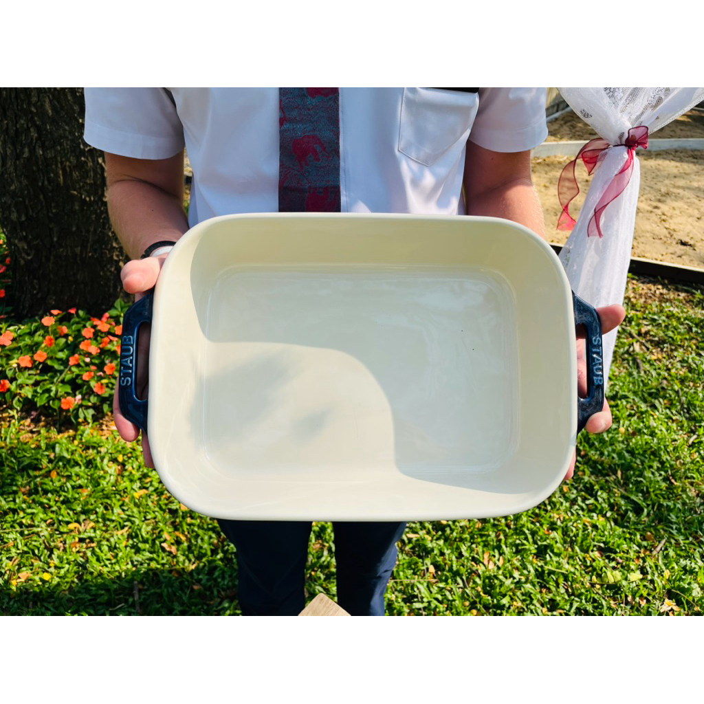 ถาดเซรามิค ขนาดใหญ่ ถาดอบขนม ถาดใส่ผักผลไม้ ถาดบุฟเฟต์ มีหูจับ ขนาด 10x14 นิ้ว สูง 3 นิ้ว