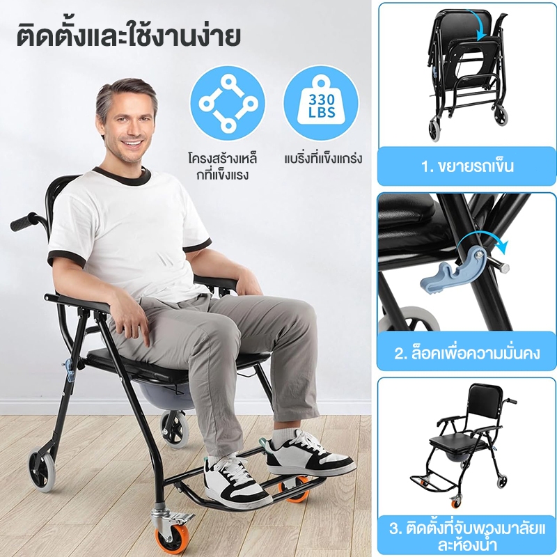 เก้าอี้อาบน้ำรับน้ำหนัก 100 กก. มีล้อสามารถเคลื่อนย้ายหนังกันน้ำสามารถใช้เป็นรถเข็นเหมาะสำหรับหญิงตั้งครรภ์และผู้สูงอายุ