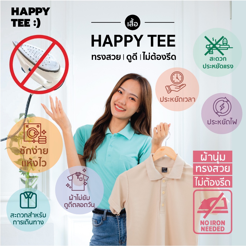 HAPPY TEE ท้าให้ลอง!! เสื้อโปโล โทนสีชมพู ผ้านุ่มไม่ต้องรีด ทรงสวย unisex ใส่ได้ทั้งชายและหญิง