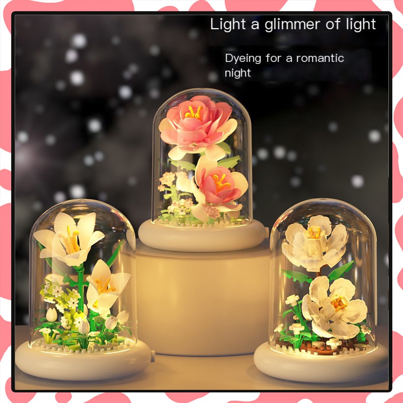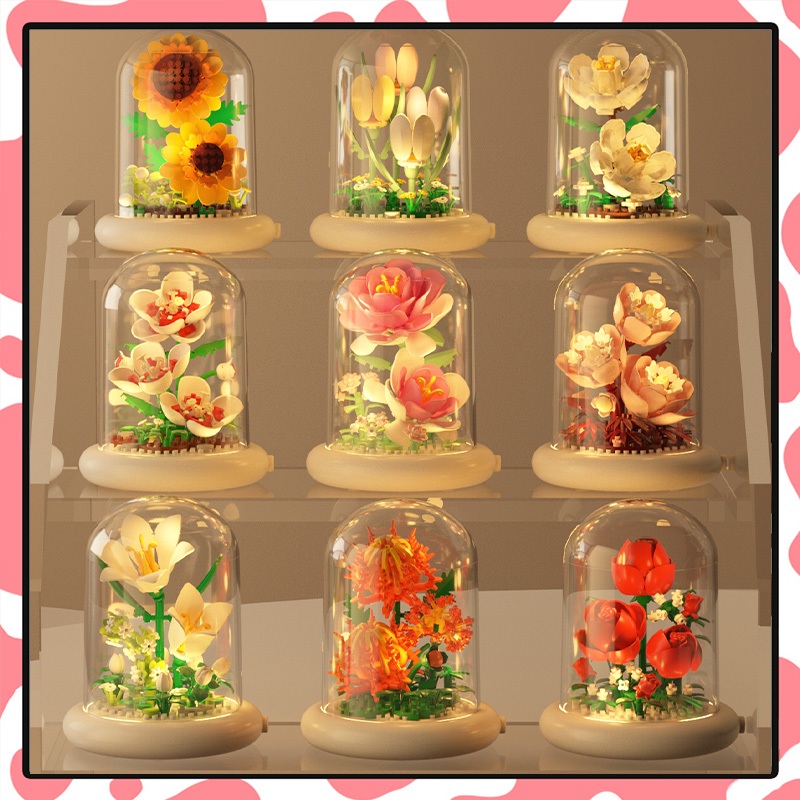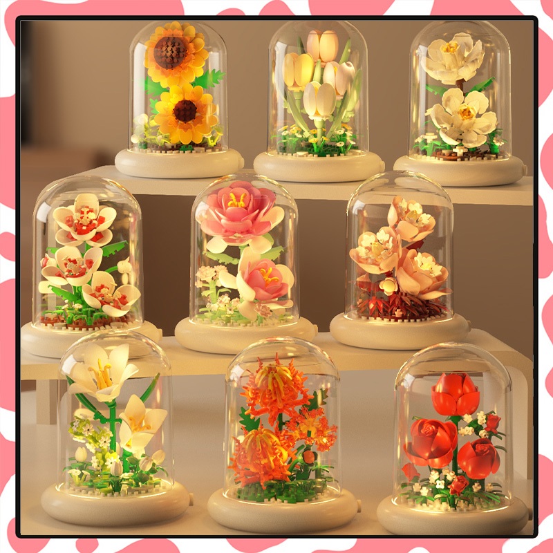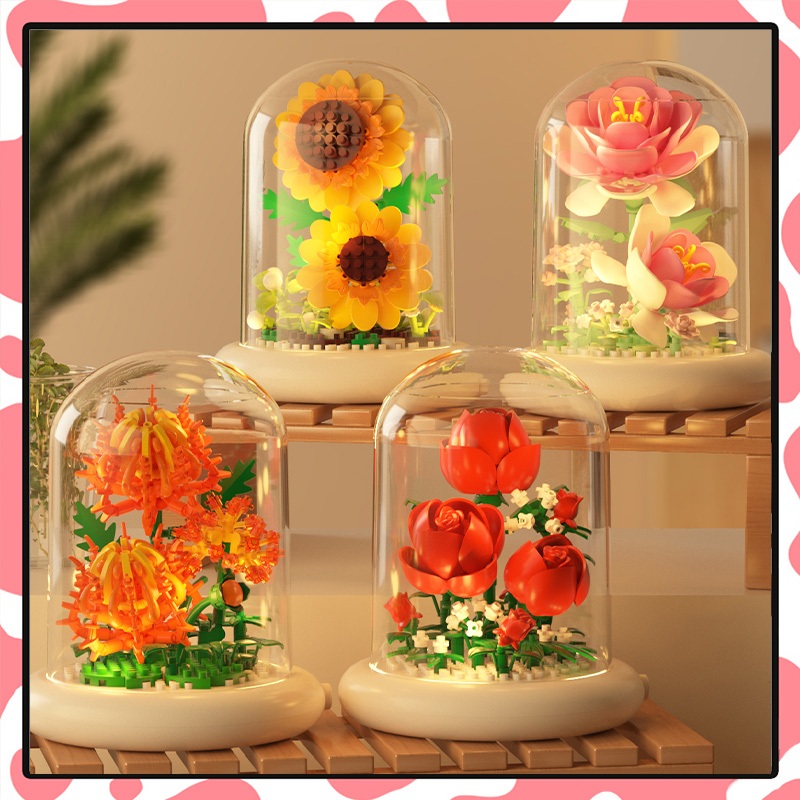 ตัวต่อดอกไม้ ดอกไม้ ตัวต่อ ดอกทานตะวัน ดอกกุหลาบ เปิดไฟได้ ของขวัญวันเกิด ของขวัญวันวาเลนไทน์