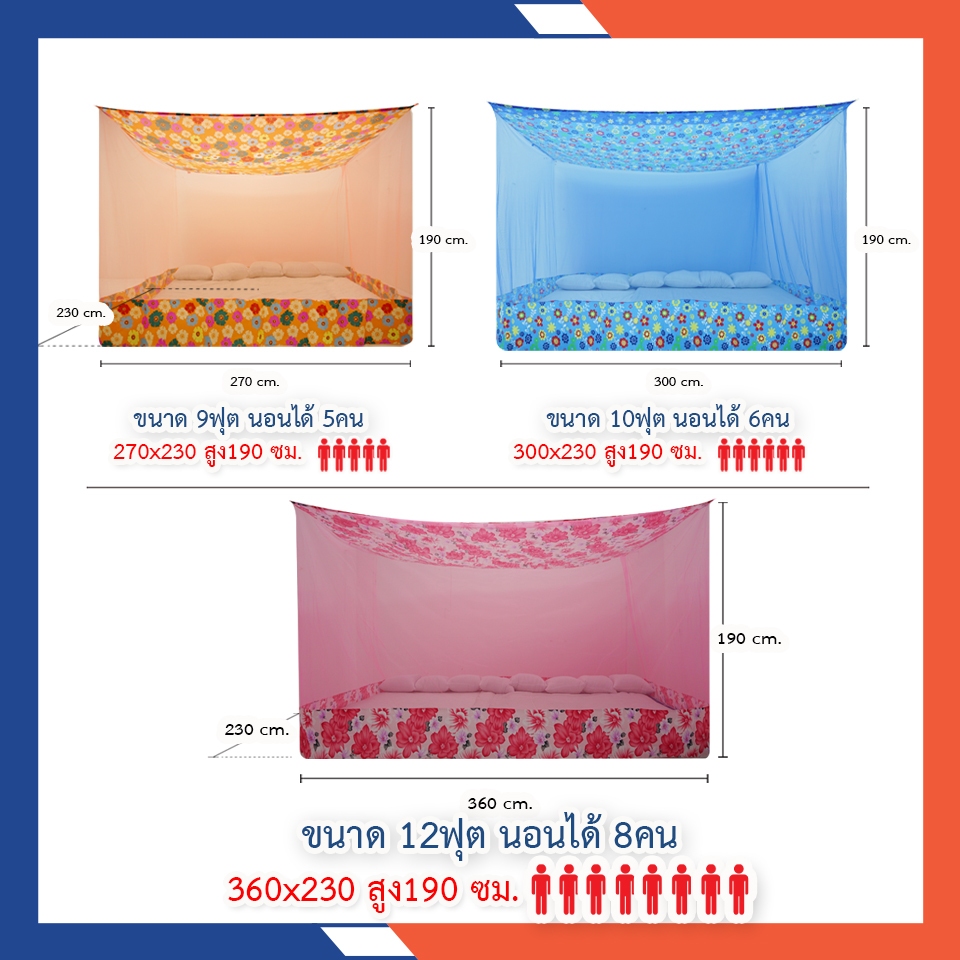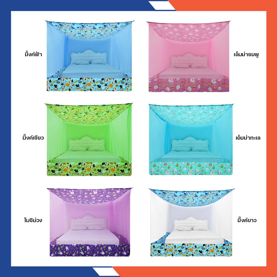 (ขายดี) มุ้งกันยุง มุ้ง 4ฟุต 6ฟุต 8ฟุต 9ฟุต 10ฟุต 12ฟุต นอน1-8คน ต่อชายผ้าโพลี ลายการ์ตูน ยี่ห้อซากุระ ต่อชายด้วยผ้าโพลี