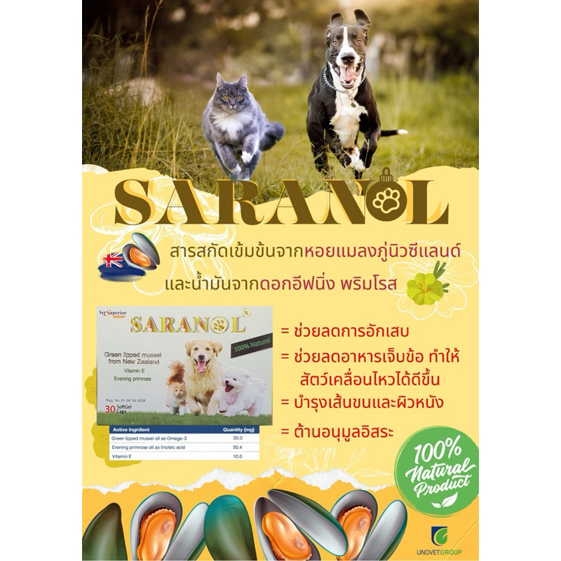 SARANOL อาหารเสริมน้ำมันหอยแมลงภู่นิวซีแลนด์บำรุงข้อ ผิวหนัง สุนัข-แมว (เลขจดทะเบียน 0108580058)