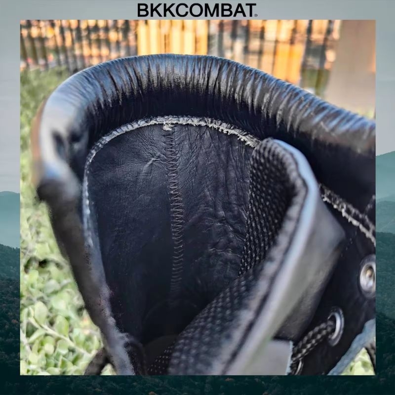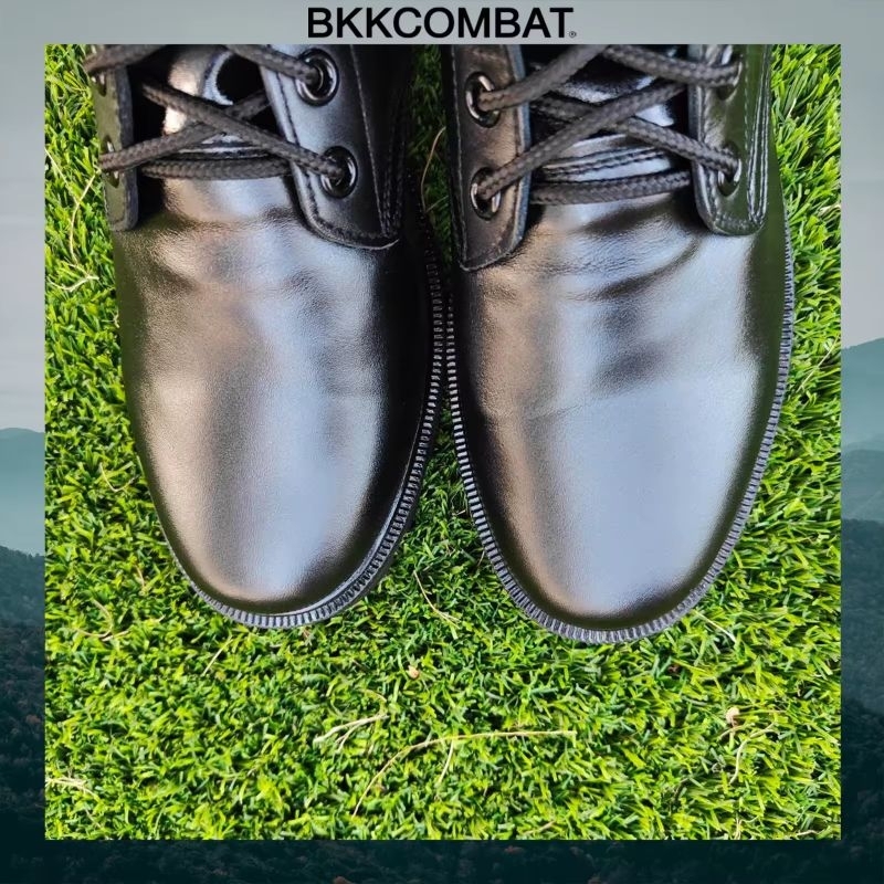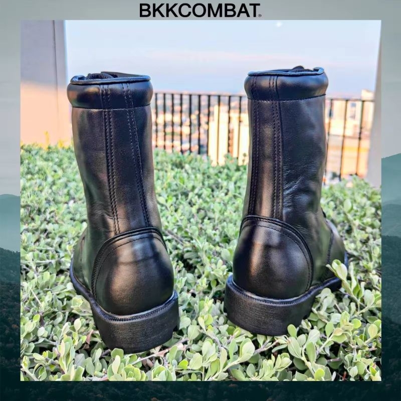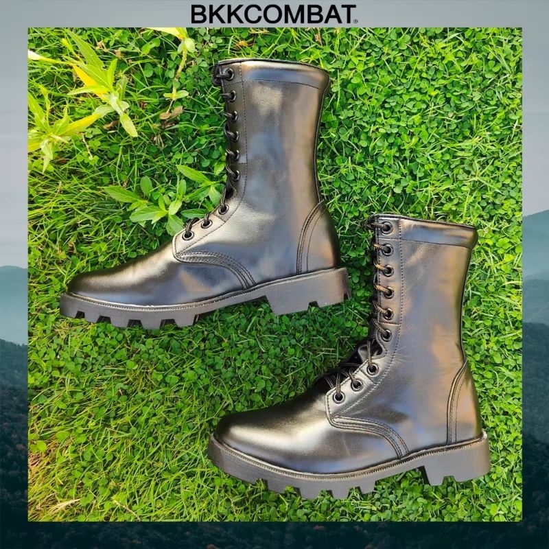 คอมแบท bk009 ไม่มีซิป พื้น อส. สูง 10 นิ้ว หนังวัวแท้ หนังนิ่มขัดเงา ทรงหัวแหลมแนะนำใส่ +1ไซส์