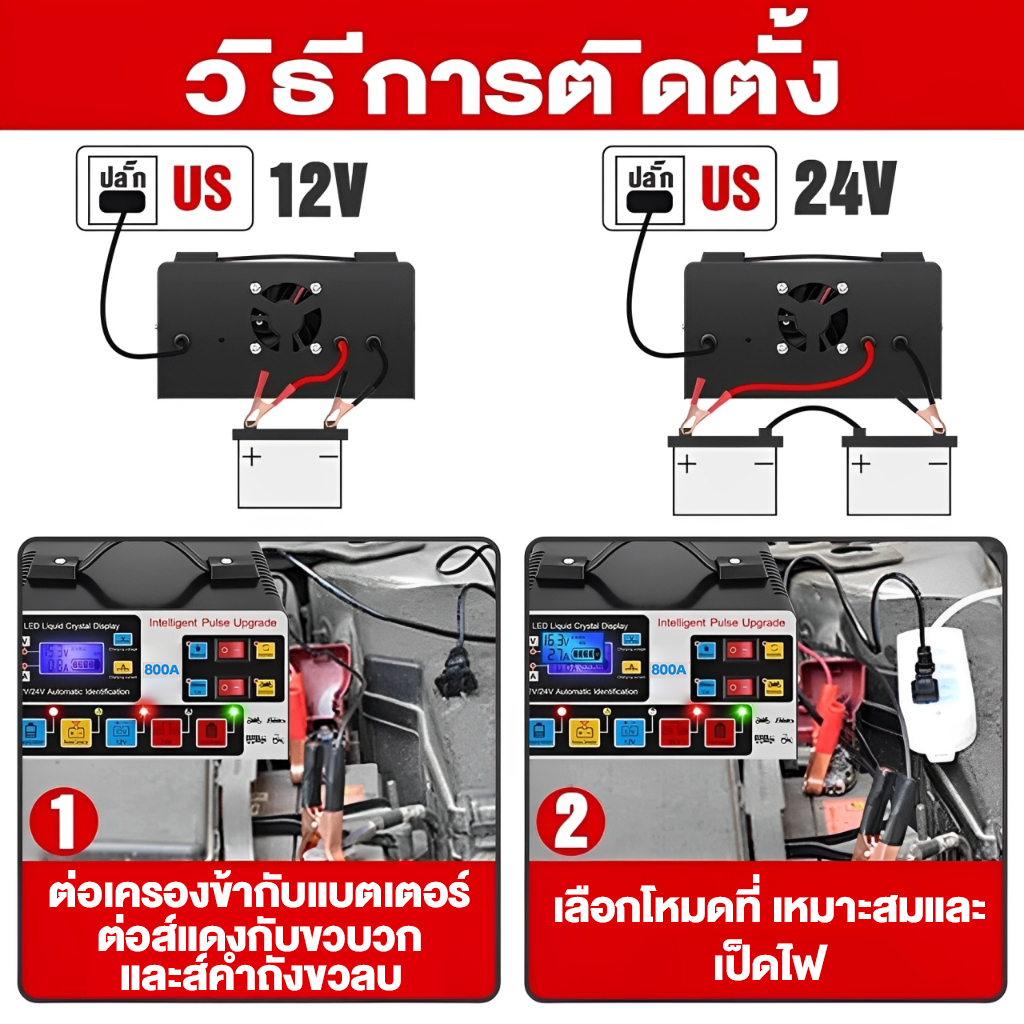 เครื่องชาร์จแบตเตอรี่รถยนต์ เครื่องชาร์จ 800A แบตเตอรี่ 12V24V ตัวชาร์จแบตเตอรี่ ชาร์จอัจฉริยะและซ่อ