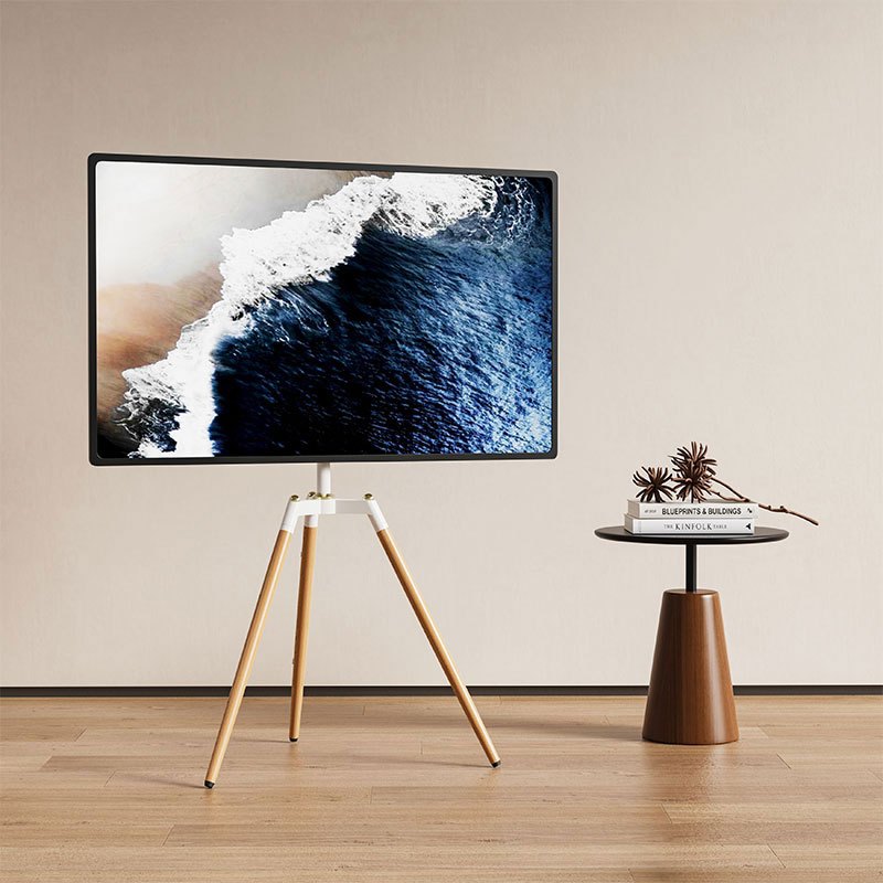[ETHU] ขาตั้งทีวีไม้จริง ขาตั้ง 3 ขา สำหรับทีวี 32-65นิ้ว รับน้ำหนัก32กก. · ปรับระดับสูง-ต่ำ · หมุน140° · ช่องเก็บสาย · สีดำ/ขาว