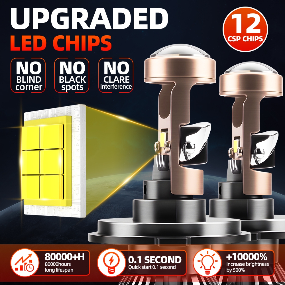 Roadsun 2pcs H4 H7 H11 9005 9006 Super Bright LED ไฟหน้ารถหลอดไฟ 45000LM โปรเจคเตอร์เลนส์ 200W 6000K CSP ชิปพร้อมพัดลม Canbus 12-24V ไม่มีข้อผิดพลาดกันน้ํา