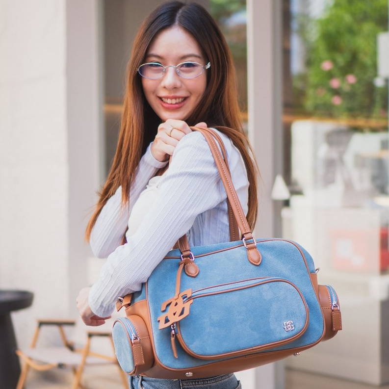 [ LoveGood ] Bonnie กระเป๋าหนังกลับแท้ และตัดขอบด้วยหนังวัวแท้ ทรงบอสตัน ไซส์ 12.5" หูจับแบบยาว