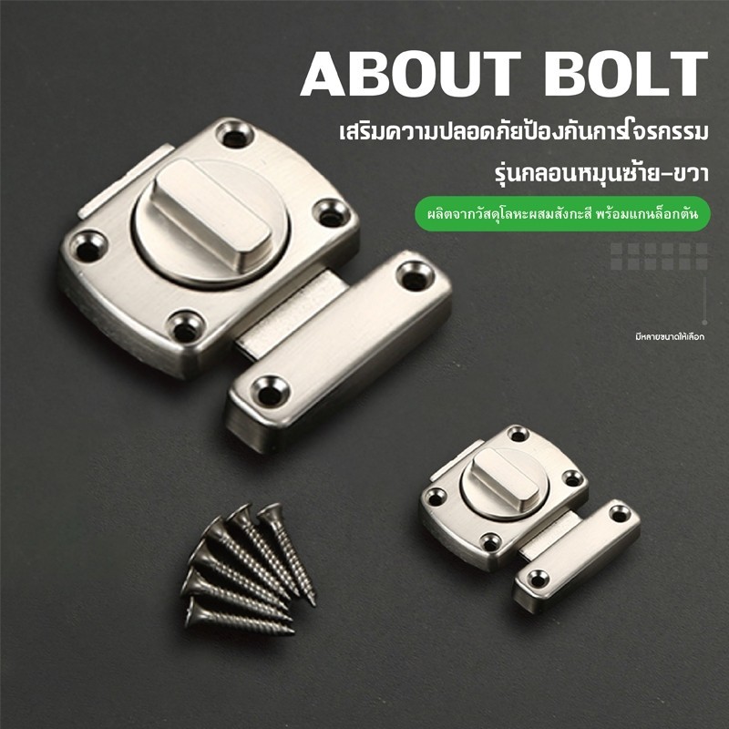กลอนล็อคแบบบิด 2ขนาดให้เลือก(42mm/55mm) กลอนหมุนประตูสแตนเลส304 กันสนิม ระบบล็อคแน่นหนา ปลอดภัย100%