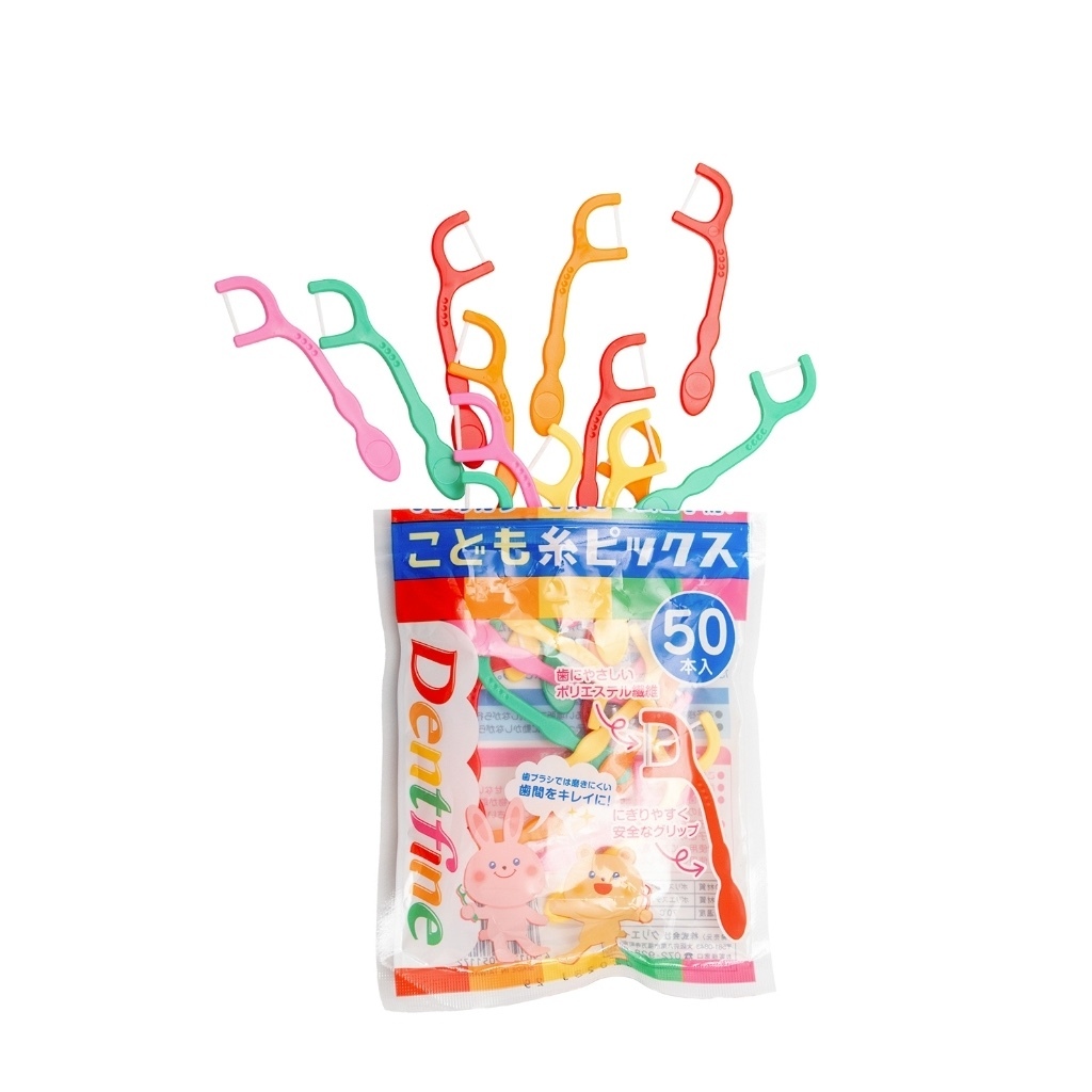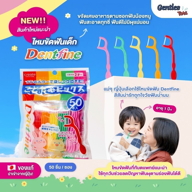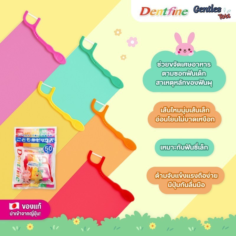 Series Gentles Tots Dentfine Floss ไหมขัดฟันเด็ก แบบมีด้ามจับ สีสันสดใส แพ็ค50ชิ้น อายุ 1 ปีขึ้นไป