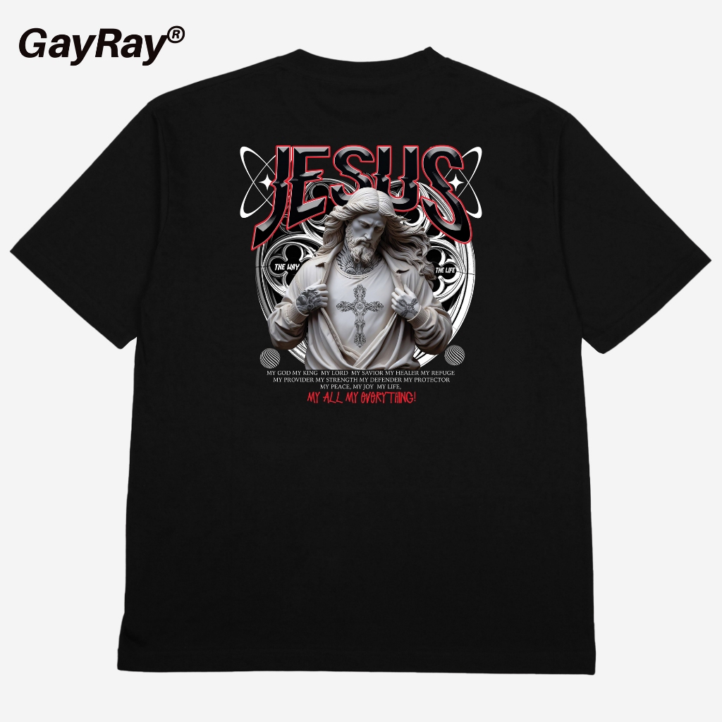 GayRay ⎰JESUS.⎱ เสื้อยืดโอเวอร์ไซส์ Cotton 100% นุ่่ม ใส่สบาย