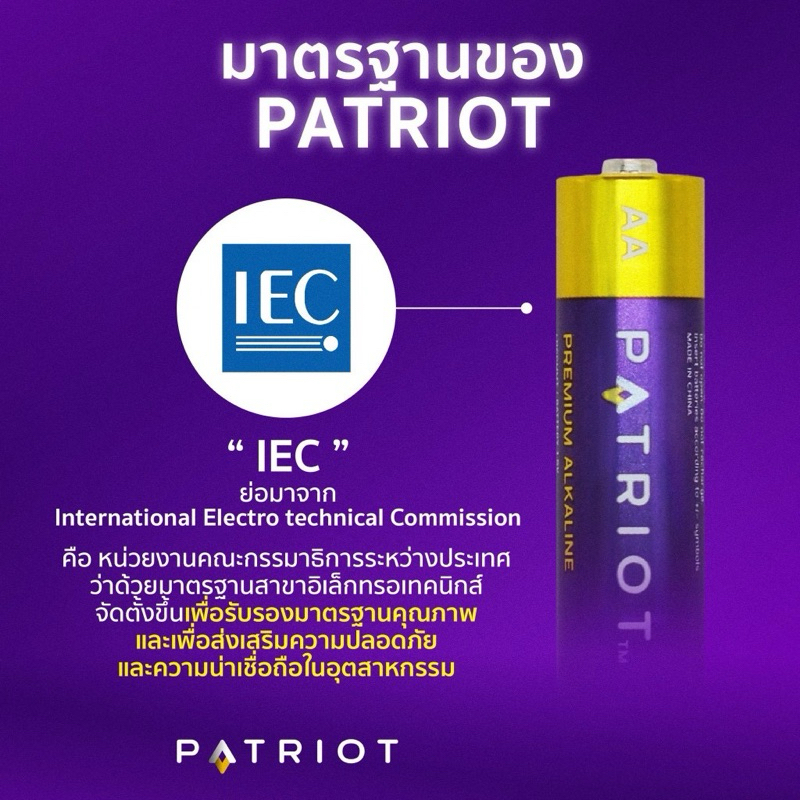 ถ่านเจ้าพลัง AAA Patriot Premium Alkaline Pack 10 ก้อน/แพ็ก(SC) ถ่านม่วงทอง พลังแรง ทน นาน มากกว่าที่เคยมี 1.5V
