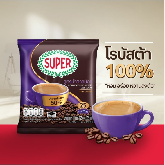 ซุปเปอร์กาแฟ กาแฟสำเร็จรูป 3in1 **ขนาด 275-425 กรัม/ 25ซอง**