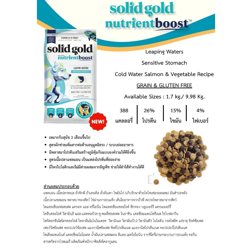 ล็อตใหม่ 2027 พร้อมส่ง - สูตรใหม่ Nutrientboost Solid Gold Leaping Waters อาหารเม็ดสุนัขโต โฮลิสติก สูตรแซลมอน