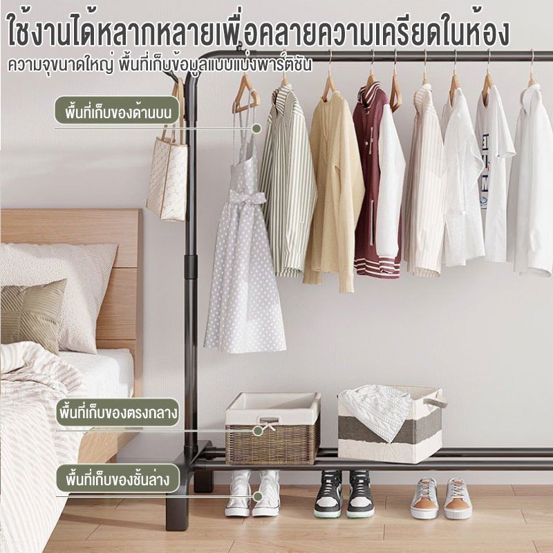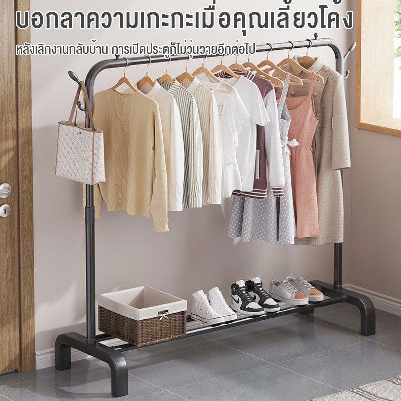 ME ราวตากผ้า ตากผ้าบาร์คู่ ชั้นวางของ บาร์เดี่ยว พร้อมชั้นวางของและตะขอแขวนเสื้อแขวนหมวก พร้อมส่ง รับน้ำหนักได้ 50+kg