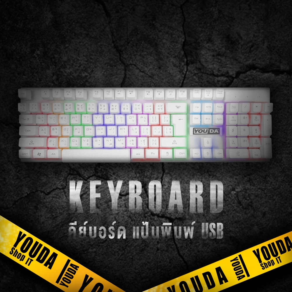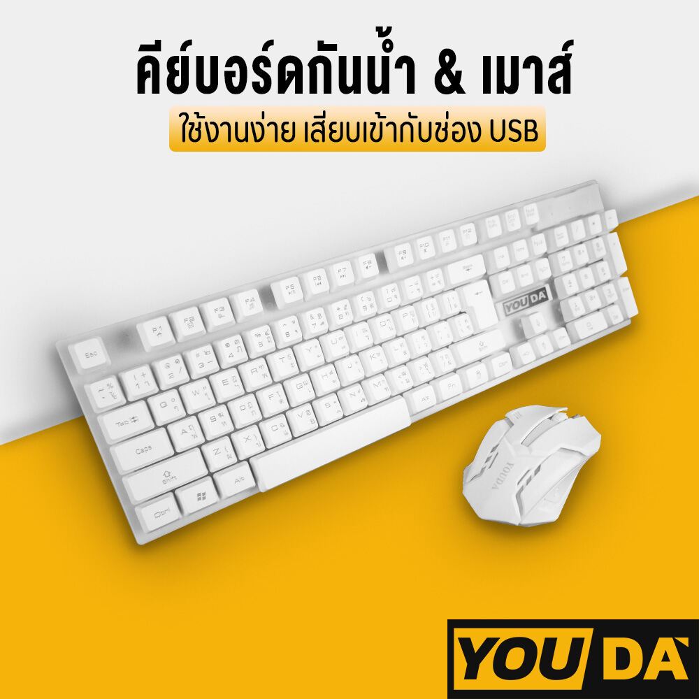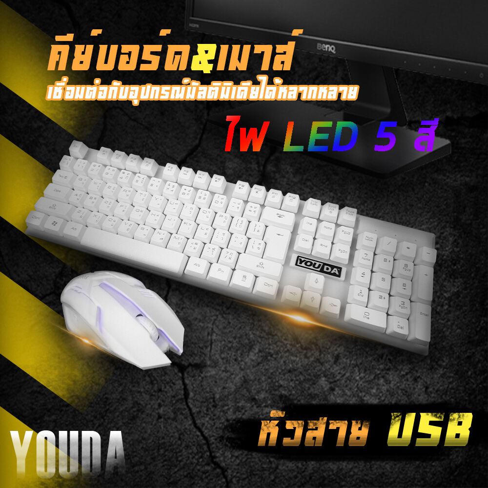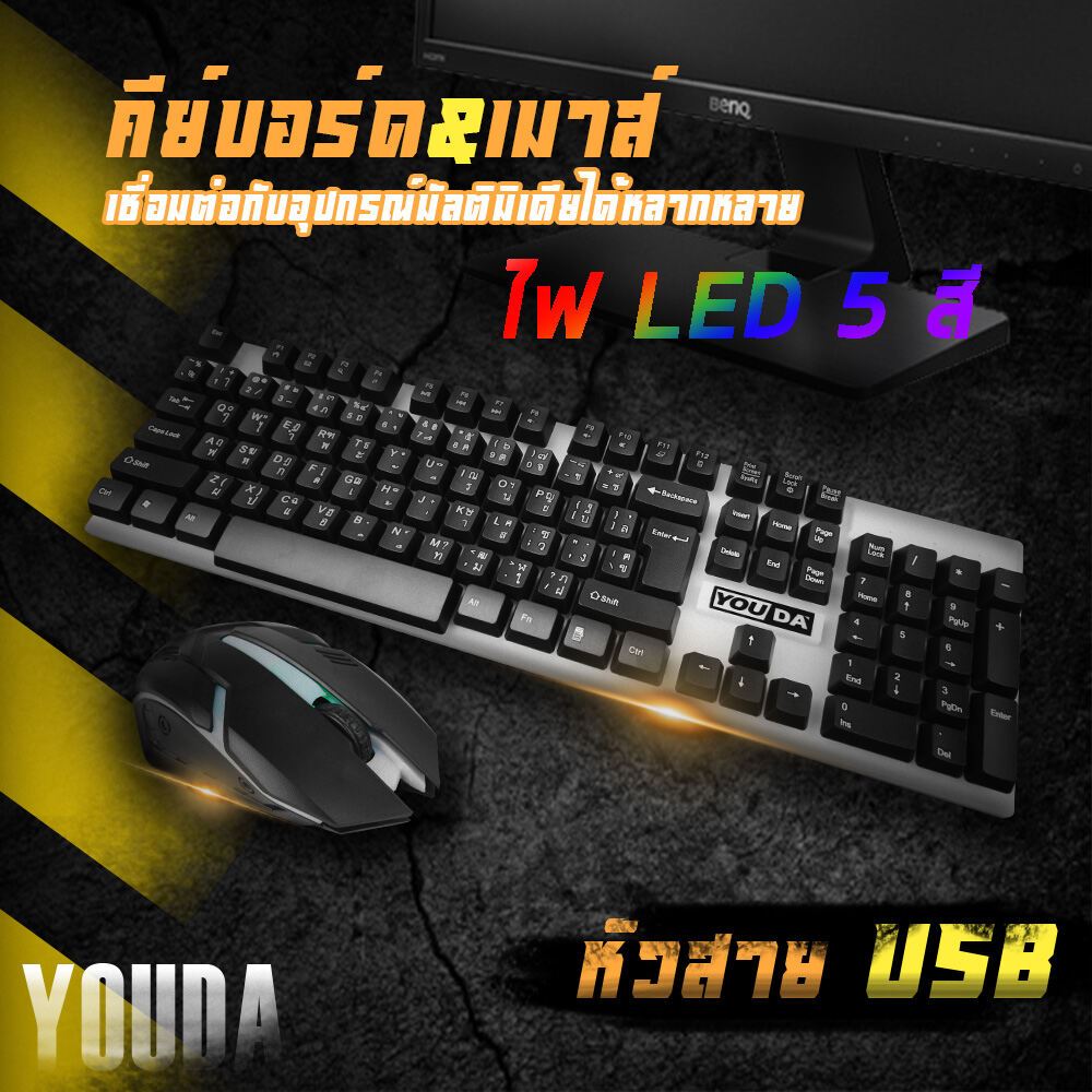 YOUDA ชุดคีย์บอร์ดและเมาส์ LED USB รับประกัน 1ปี มีไฟLED เสียงเงียบ YD-K666 + YD-L302 ชุดคีย์บอร์ด USB ชุดแป้นพิมพ์ USB