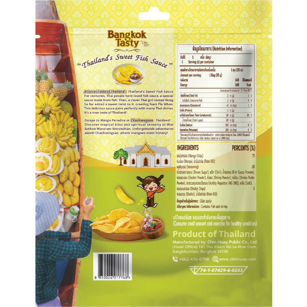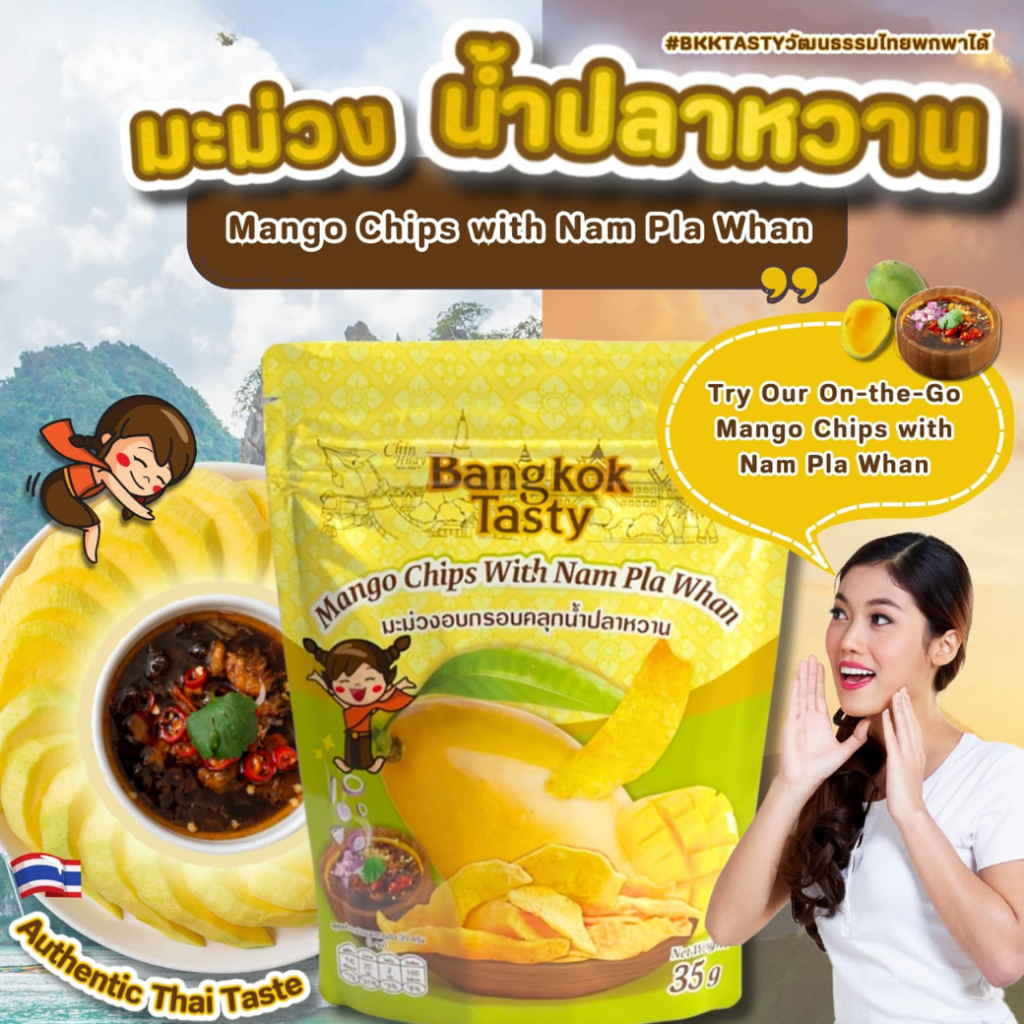 Bangkok Tasty มะม่วงอบกรอบคลุกน้ำปลาหวาน 35g | เคี้ยวกรอบ รสชาติหวานเค็มกลมกล่อม