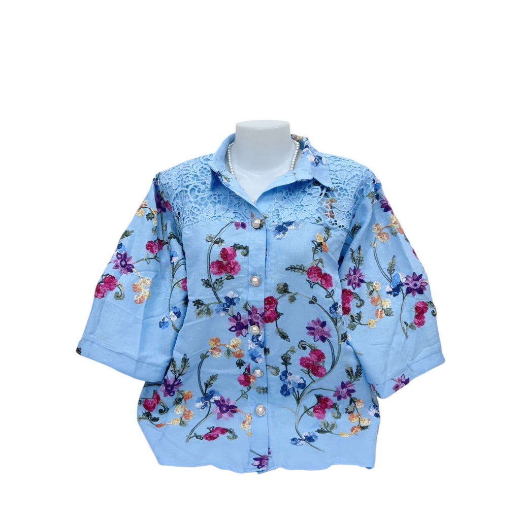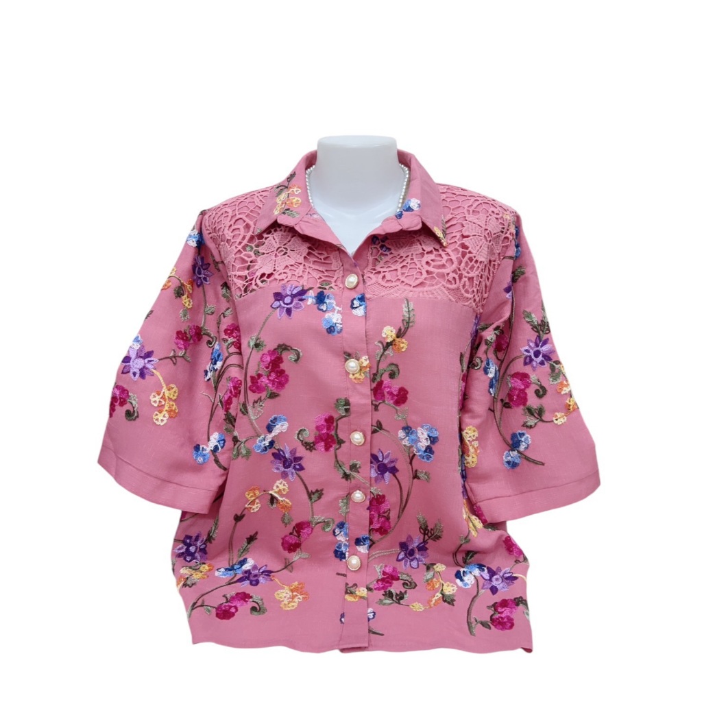 คอปกกระดุมหน้าผ้าลินินผสมผ้าฝ้าย รอบอก 42-46-52 เป็นงานฟรีไซส์ ใส่ได้ตั้งแต่ 38-40-42-44-48-50