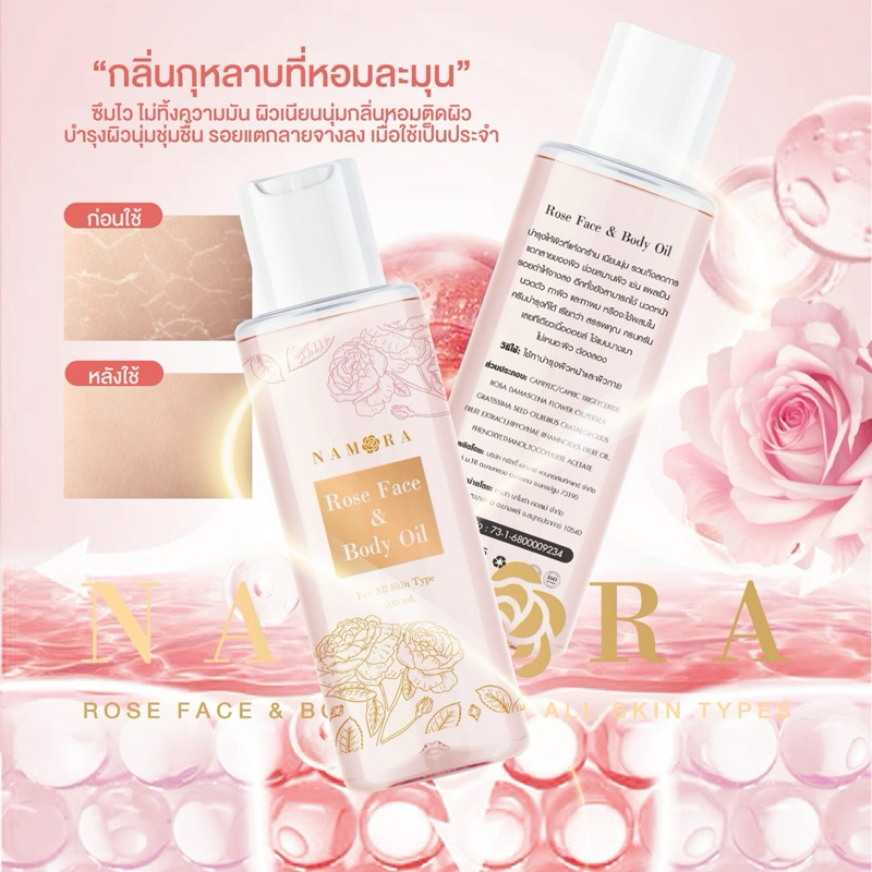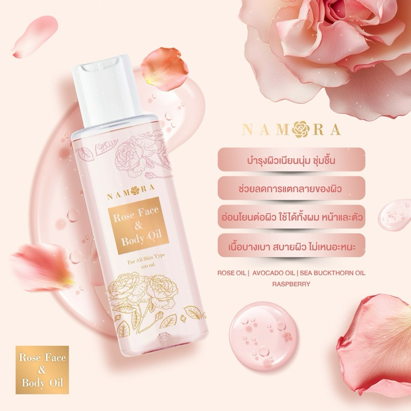 บอดี้ออยล์ นาโมร่า ออยล์กุหลาบ ออยล์ทาผิว ทาหน้า หมักผม namora rose face & body oil
