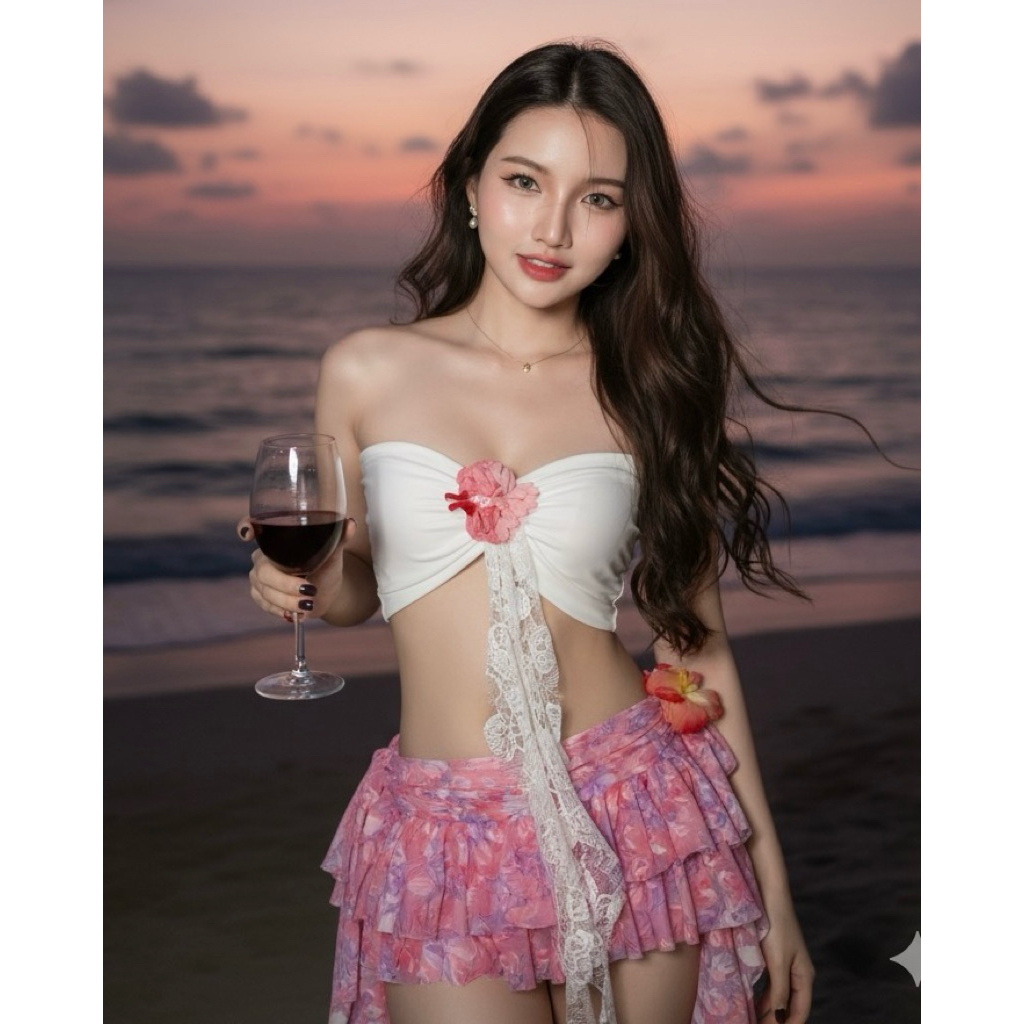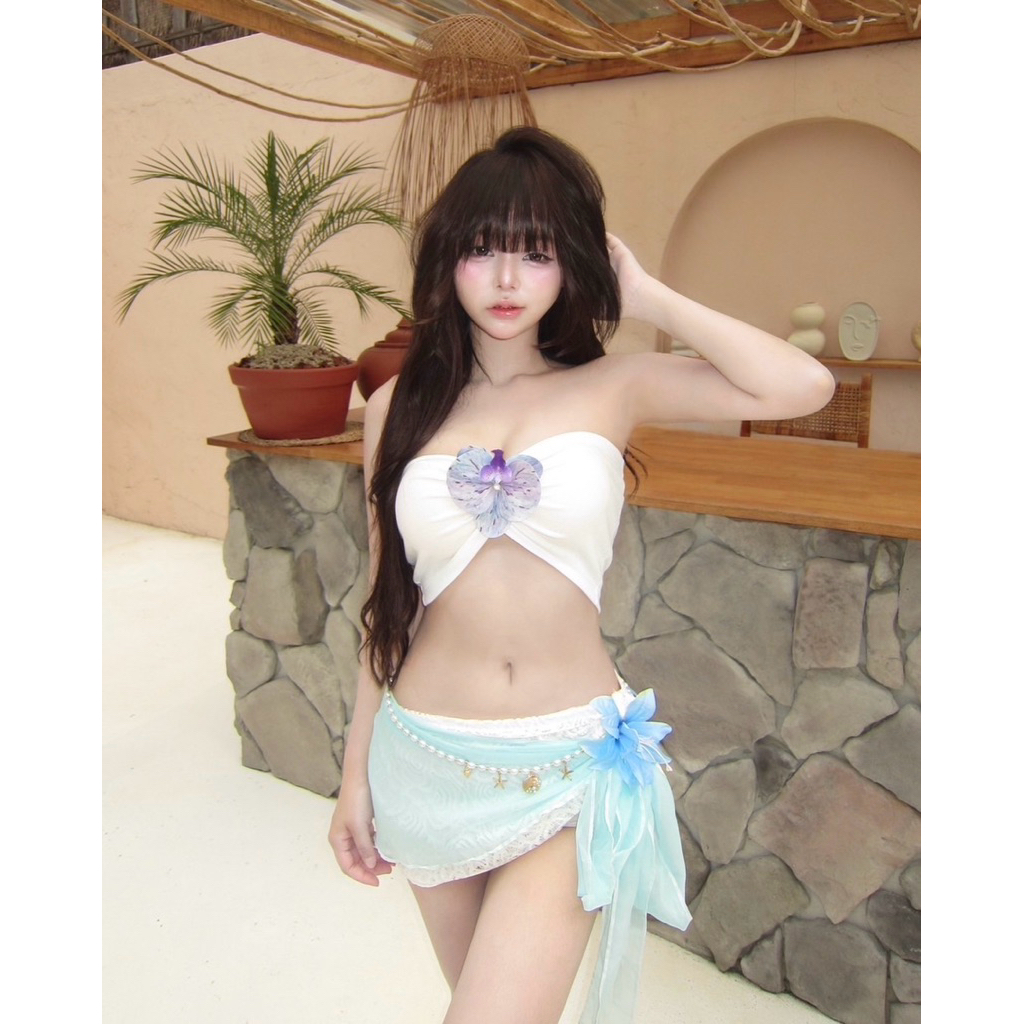 Petite♡︎ Hawaii set เซตเสื้อ+กระโปรงดอกไม้ เกาะอกแมงกะพรุน ใส่ไปทะเล ลุคซัมเมอร์