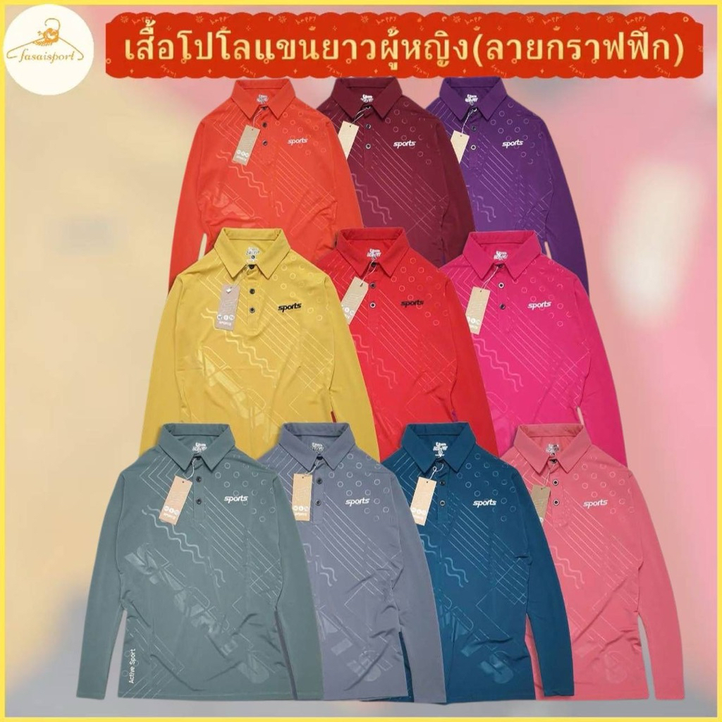 โปรลดล้างสต๊อก !!เสื้อโปโลแขนยาว ทรงผู้หญิง เข้ารูป สวมใส่สบาย ดูดี ทันสมัย