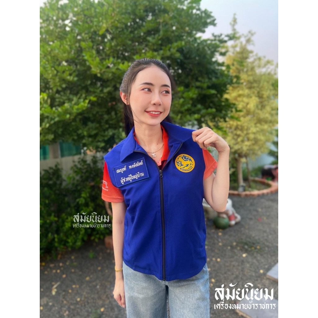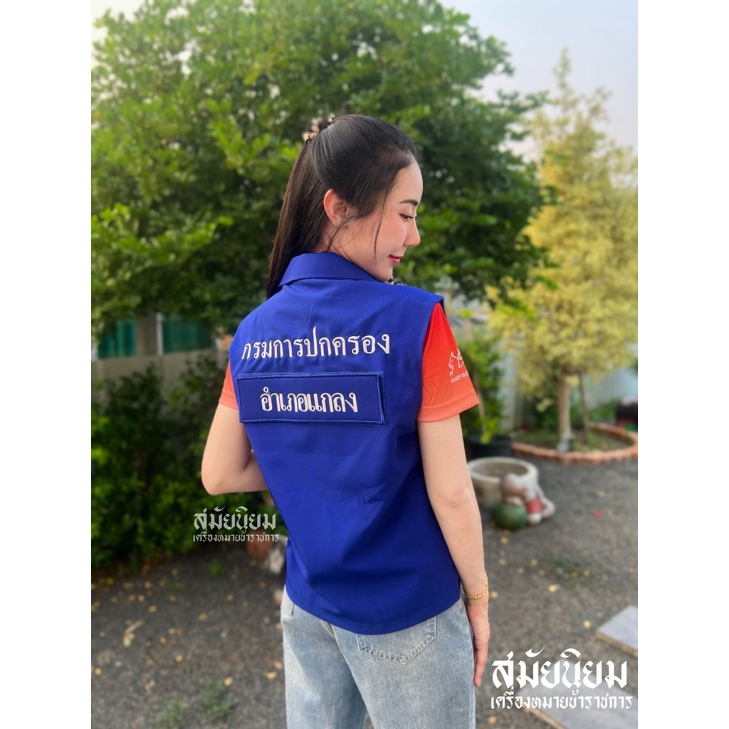 เสื้อกั๊กผ้าสูทกรมการปกครอง สีน้ำเงิน (พร้อมอาร์มป้ายชื่อ) 💬 แจ้งชื่อในช่องแชท