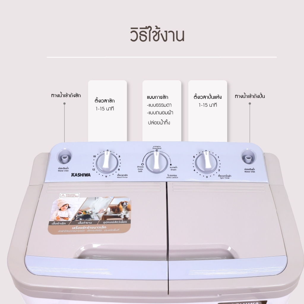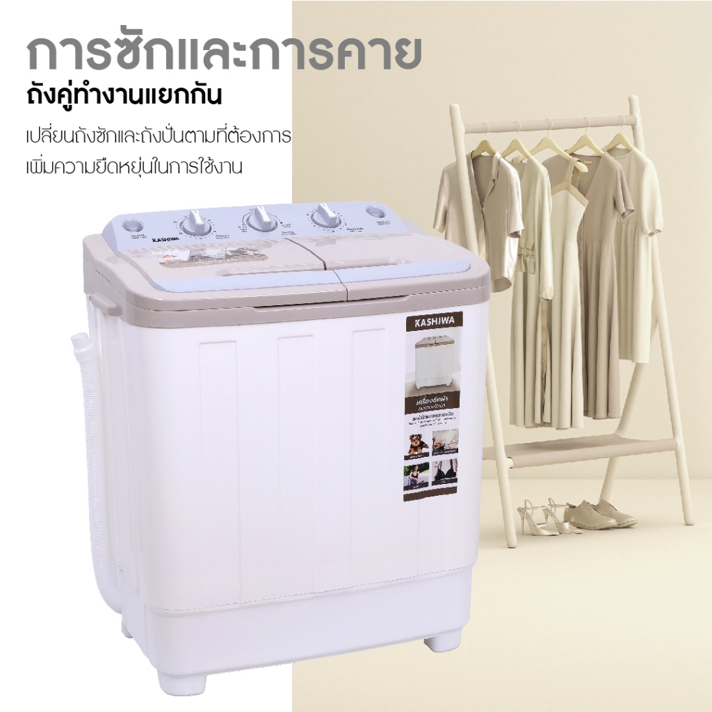 KASHIWA รุ่น S36C เครื่องซักผ้าฝาบน 2 ถัง เครื่องซักผ้า 2in1 ขนาด 9 กก. (ถังซัก 5 กก. ถังปั่น 4 กก.) รับประกันศูนย์ 1 ปี