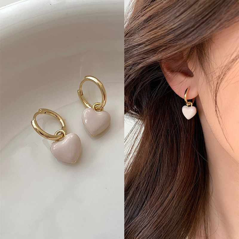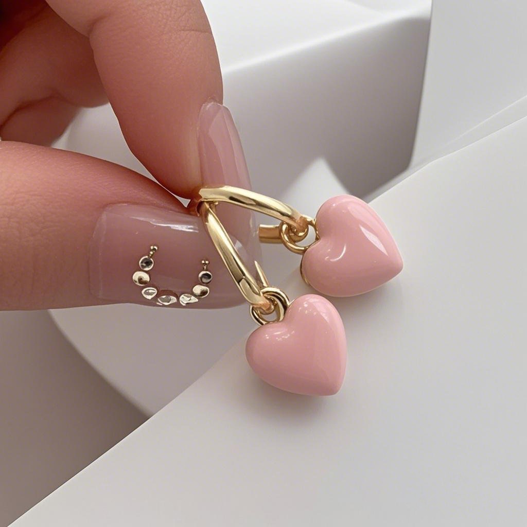 ต่างหูหัวใจสีชมพู Drop Glaze ต่างหูหัวใจหญิง