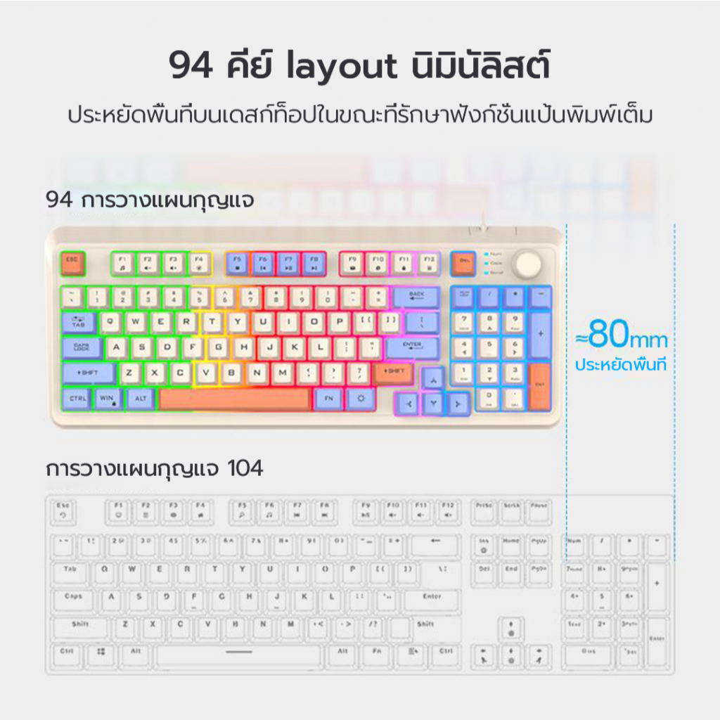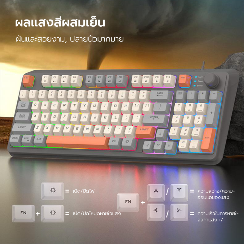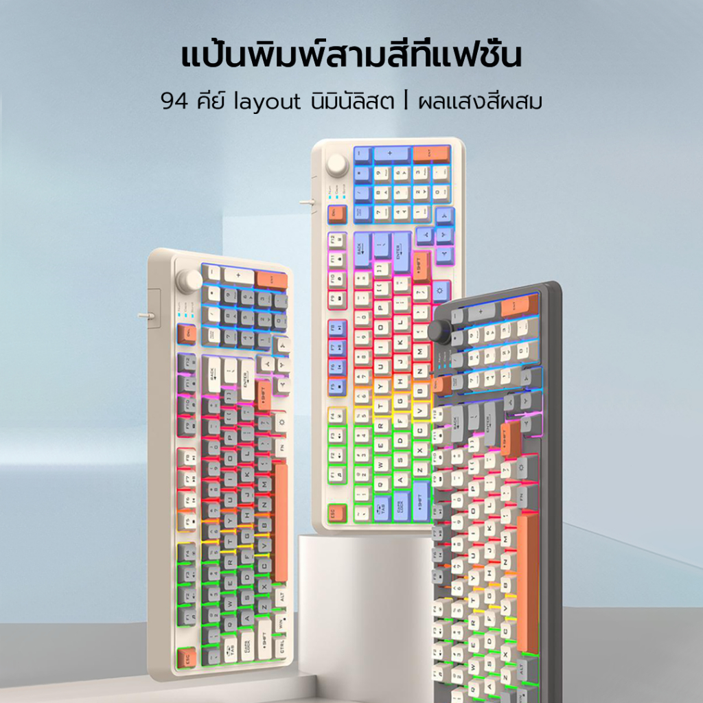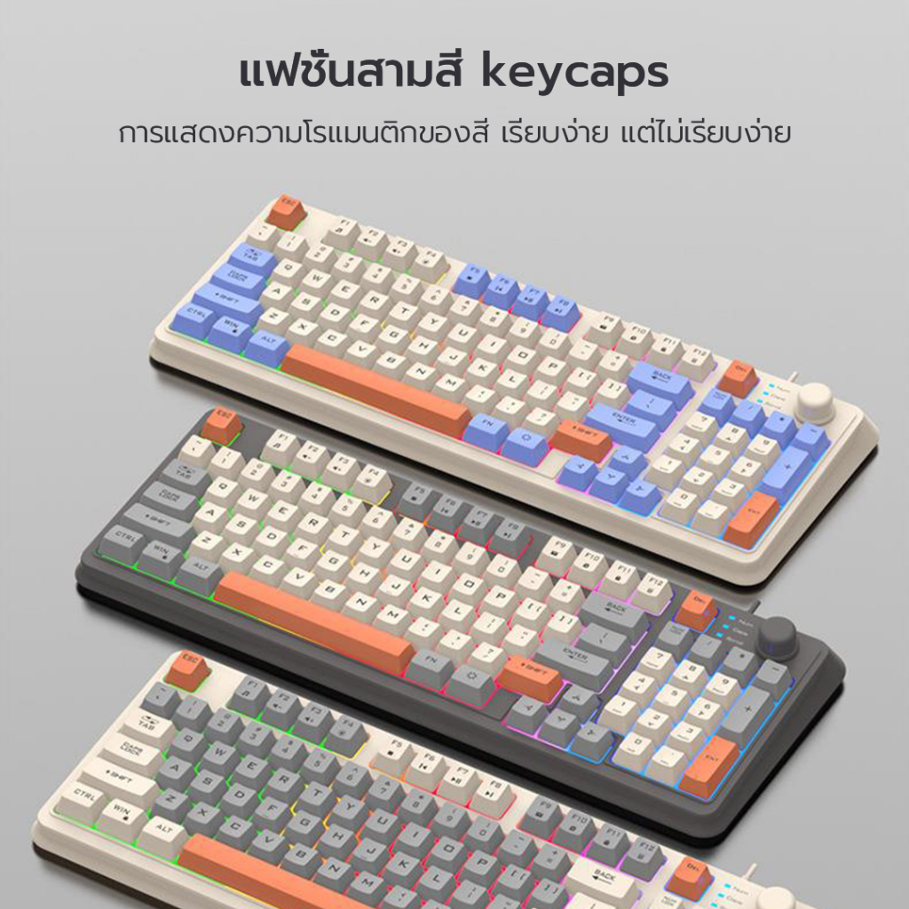 XUNFOX คีย์บอร์ดแมคคานิค K820 ปุ่มกดสามสี + RGB แสงสว่าง ภาษาไทย ปุ่มปรับระดับเสียงแบบมัลติซิสเต็ม ออฟฟิศ วินโดวส์ แมคโอเอส