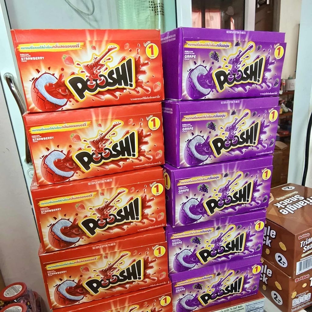 [แพ็ค40ชิ้น] Poosh พูช หมากฝรั่งสอดไส้น้ำเชื่อม กลิ่นองุ่น กลิ่นสตรอเบอร์รี่ 200 กรัม/แพ็ค