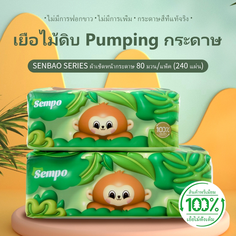 【ส่งจากโรงงานโดยตรง】Sempo Tissue กระดาษเช็ดหน้าแบบดึง 1ห่อ 80แผ่น 3ชั้น ใช้ในบ้าน หรือออกนอกพกพาง่าย เลือกใช้กระดาษที่ดี