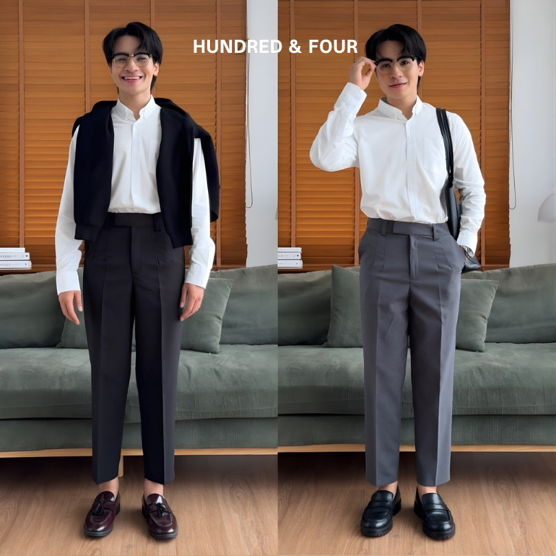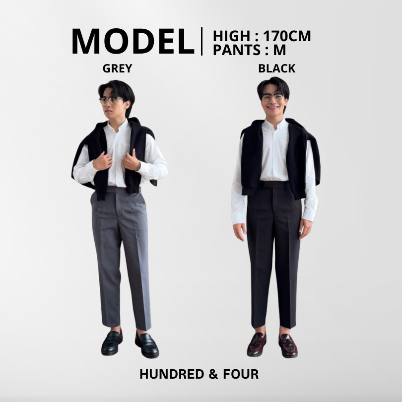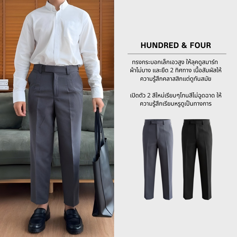 สแลค 9 ส่วน เอวสูง รุ่น COMMON มี 2 ตะขอยื่น ผ้าคุณภาพดี ยับยาก ทรงสวย คลาสสิค ใส่ออกงานหรือใส่ HUNDRED&FOUR