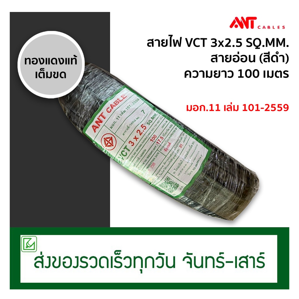 (ออกใบกำกับภาษีไม่ได้) ANT สายไฟ VCT 3x2.5 100 เมตร (ทองแดงแท้) มีมอก.