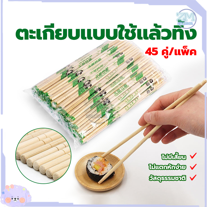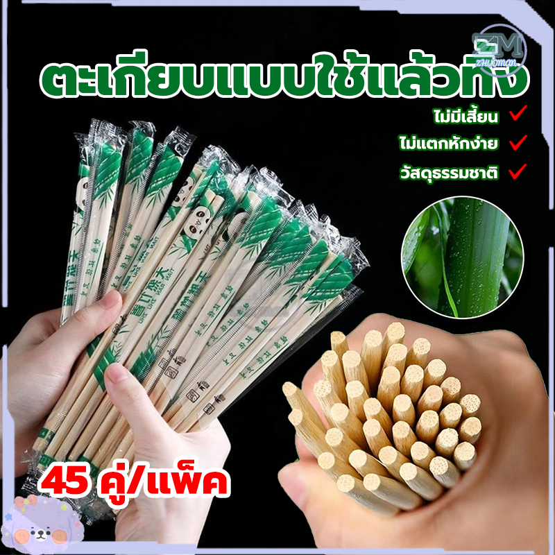 ตะเกียบไม้ไผ่ ตะเกียบอนามัยใช้แล้วทิ้ง (45คู่) คุณภาพดี สะอาด ผลิตจากไม้ไผ่ธรรมชาติ ผ่านการฆ่าเชื้อ สะอาด ปลอดภัย