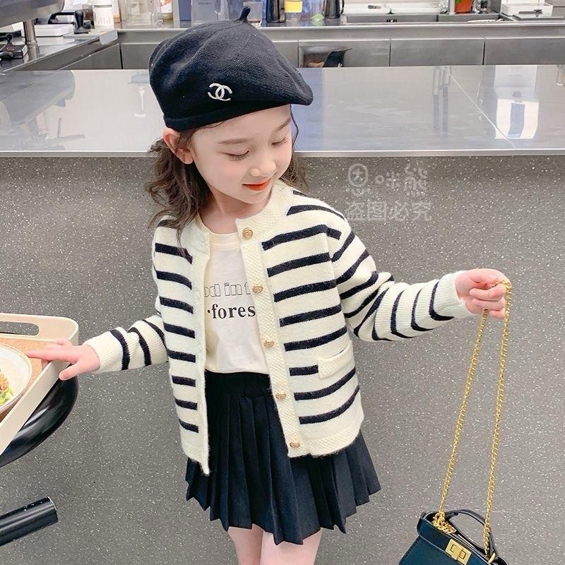 SALE หมดแล้วหมดเลย พร้อมส่ง เสื้อแจ็กเก็ตคาร์ดิแกนกันหนาว เสื้อคลุมสีดำครีม แฟชั่นสไตล์เกาหลี สําหรับเด็กผู้หญิง T889