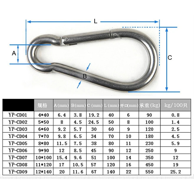 304 สแตนเลสสปริง ไม่เป็นสนิม แข็งแรง รับน้ำหนักได้ เหมาะกับ ไต่เขา โยคะ ฟิตเนส Spring Carabiner Snap Hook